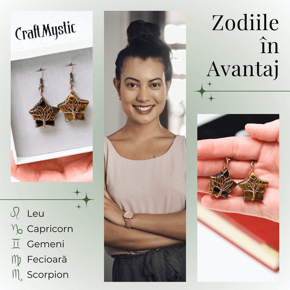Cercei Eleganti in Forma de Stea cu Piatra Semipretioasa Ochi de Tigru Natural este în așteptare și va fi expediat de îndată ce este din nou în stoc.