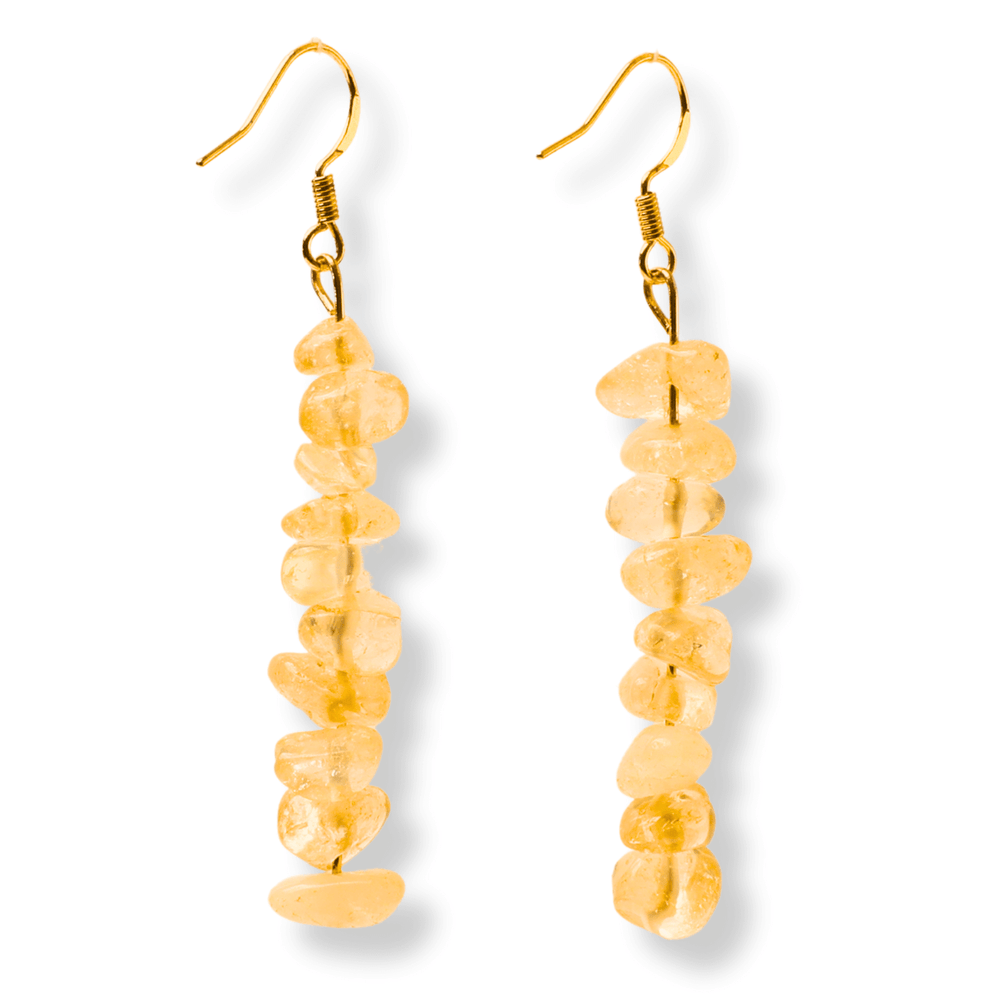 Cercei Lungi cu Pietre Semipretioase de Citrin Natural si Elemente din Alama, Bijuterii Aurii pentru Femei