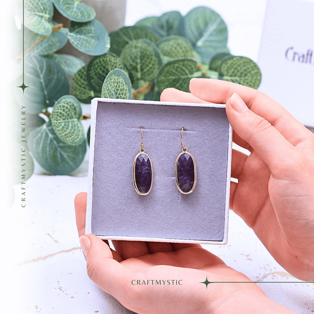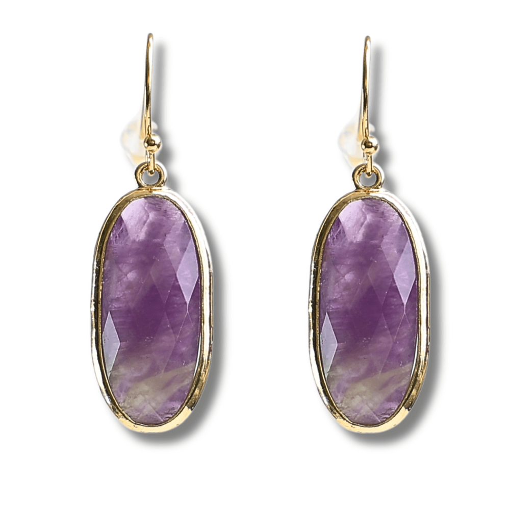Cercei Ovali cu Piatra Ametist Fatetat Aurii - Energie si Eleganta