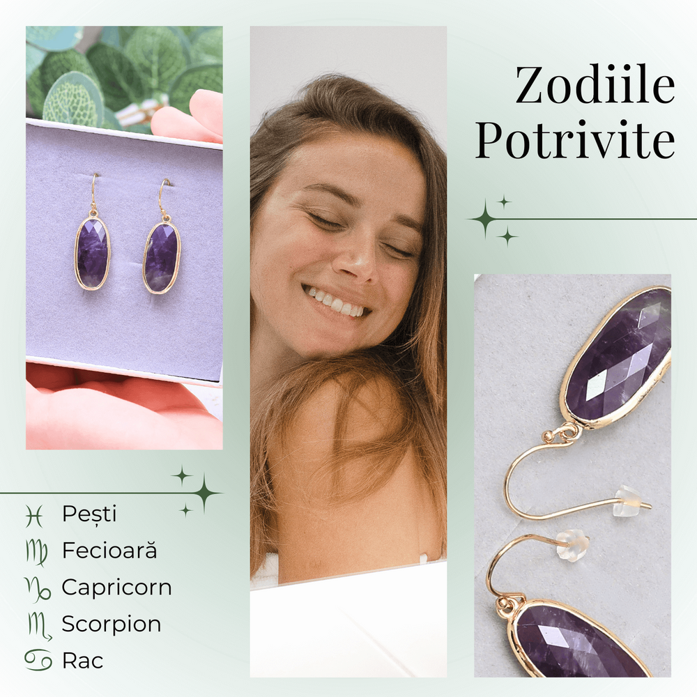 2. Încărcare Energetică: Înainte de a-i purta, ține cerceii în mâini câteva secunde pentru a te conecta la energia ametistului.