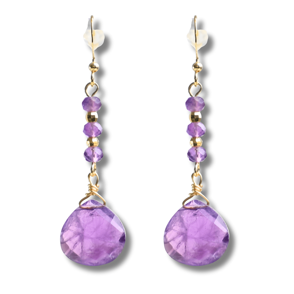 Cercei Rotunzi cu Piatra Ametist Fatetat Aurii - Claritate si Eleganta