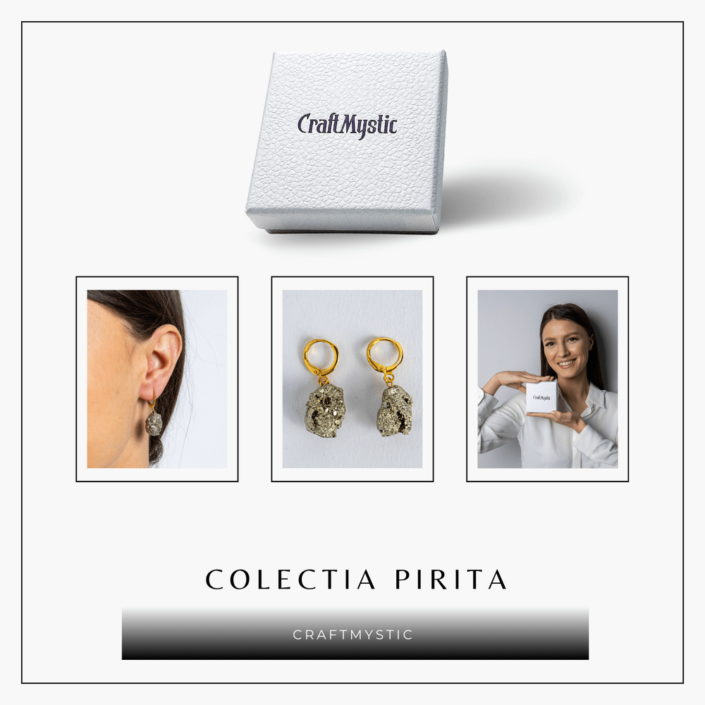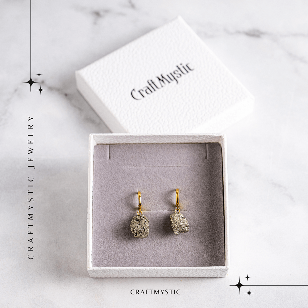 Putere in forma pura – Cercei cu piatra Pirita si montura aurie