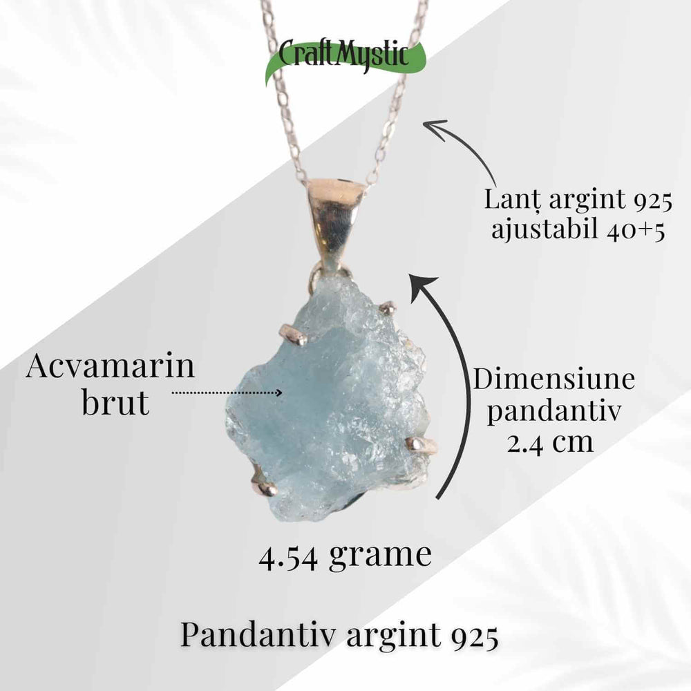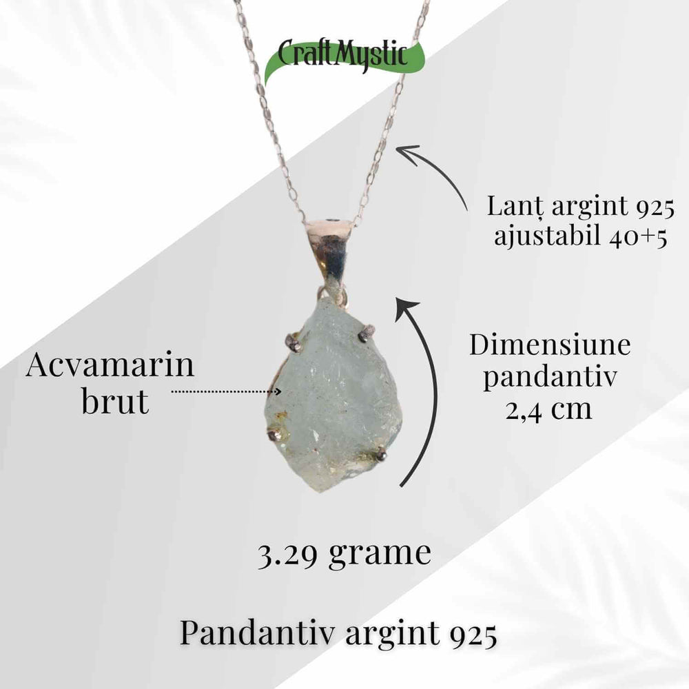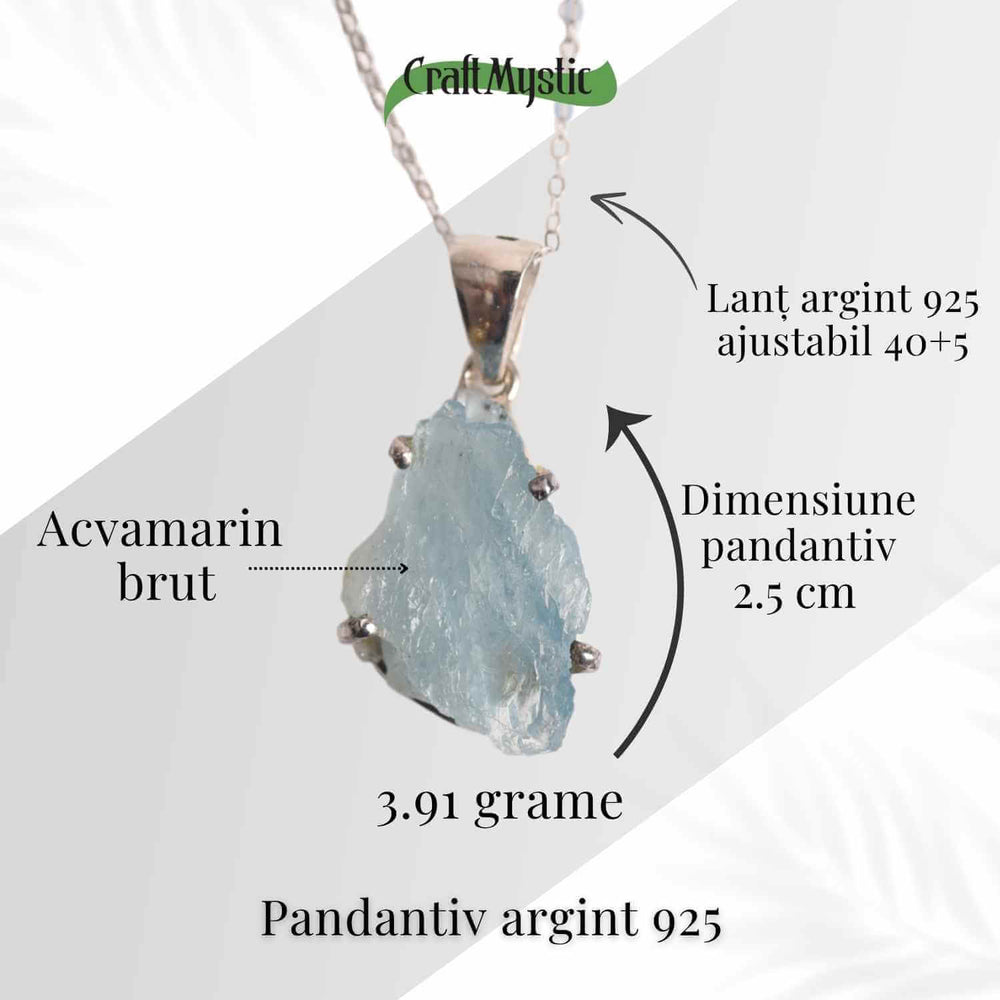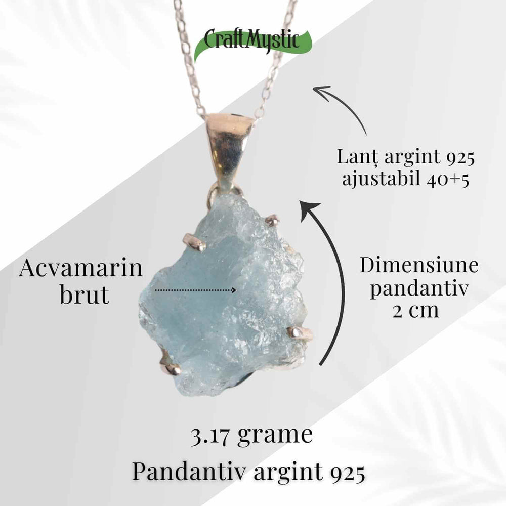 Descopera noul tau talisman unic – un colier absolut special din acvamarin brut si argint 925, pentru echilibru emotional si claritate mentala.
