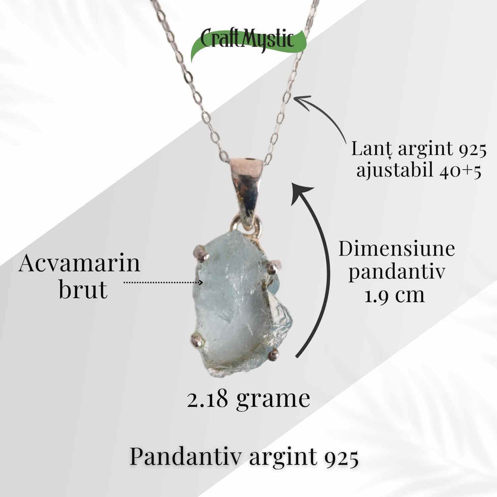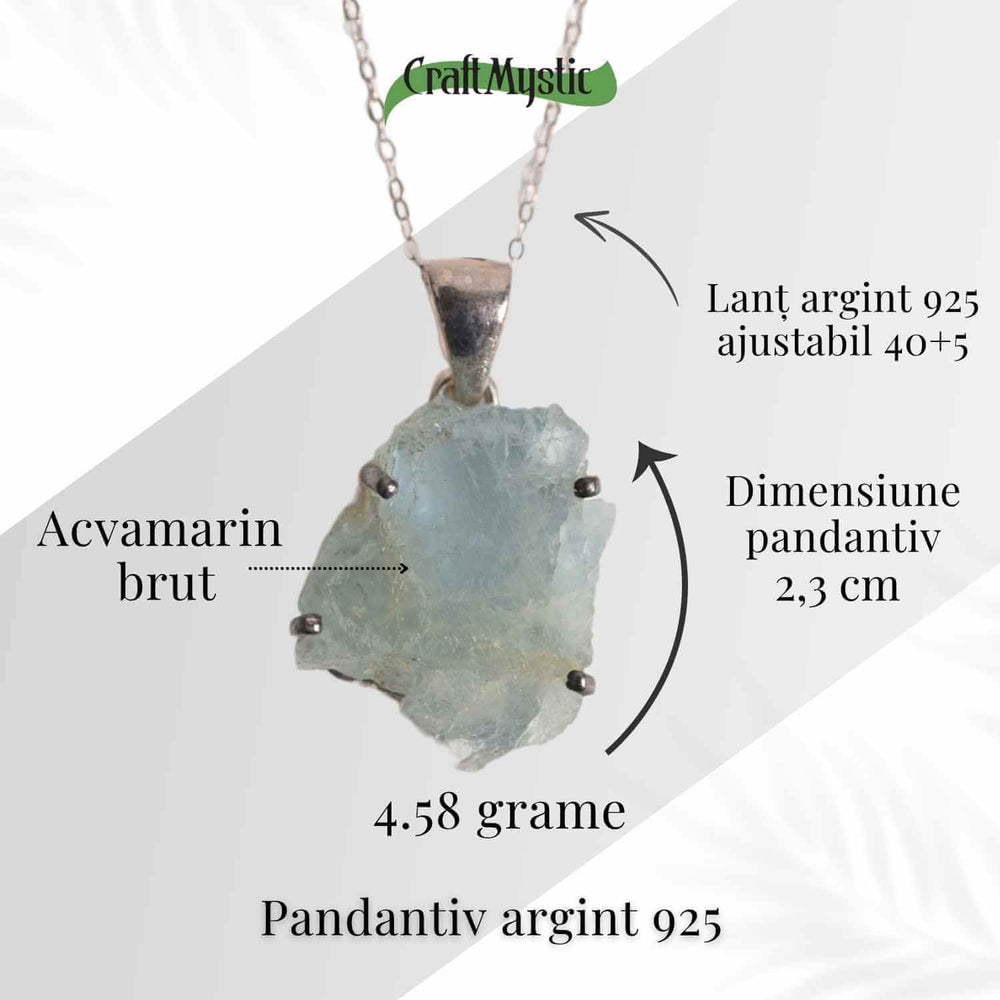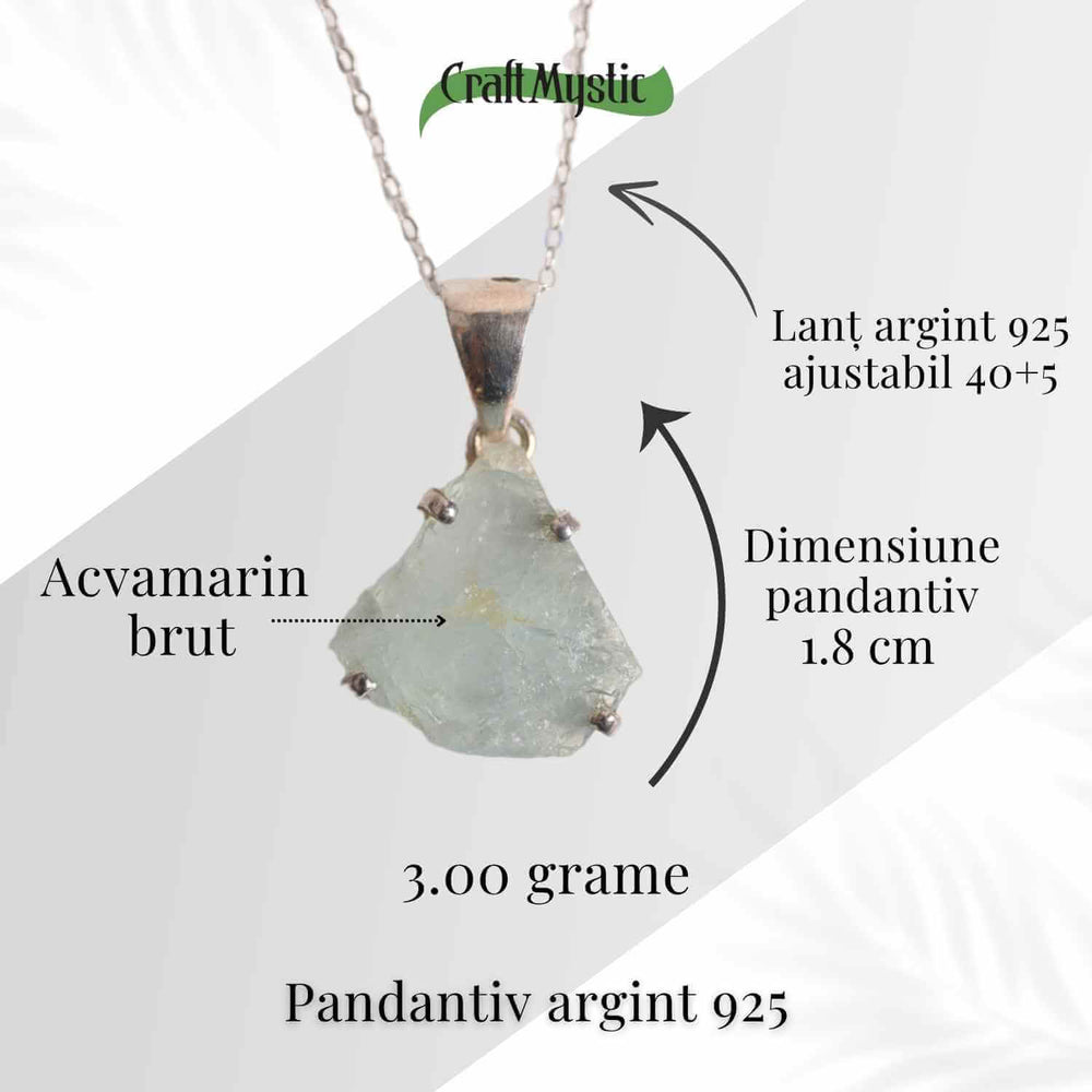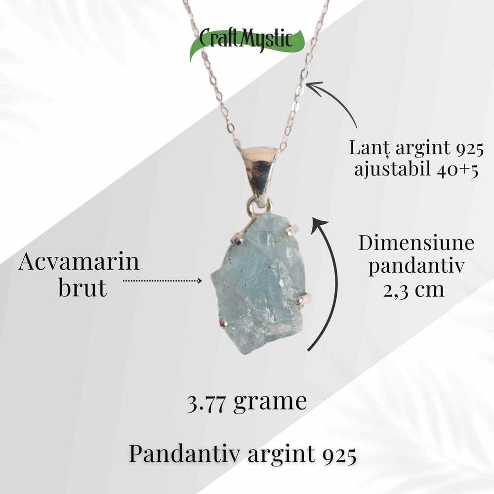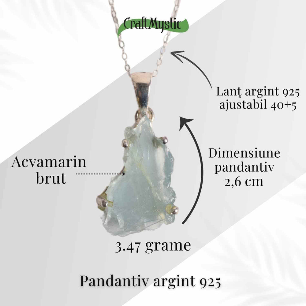 Descopera noul tau talisman unic – un colier absolut special din acvamarin brut si argint 925, pentru echilibru emotional si claritate mentala.