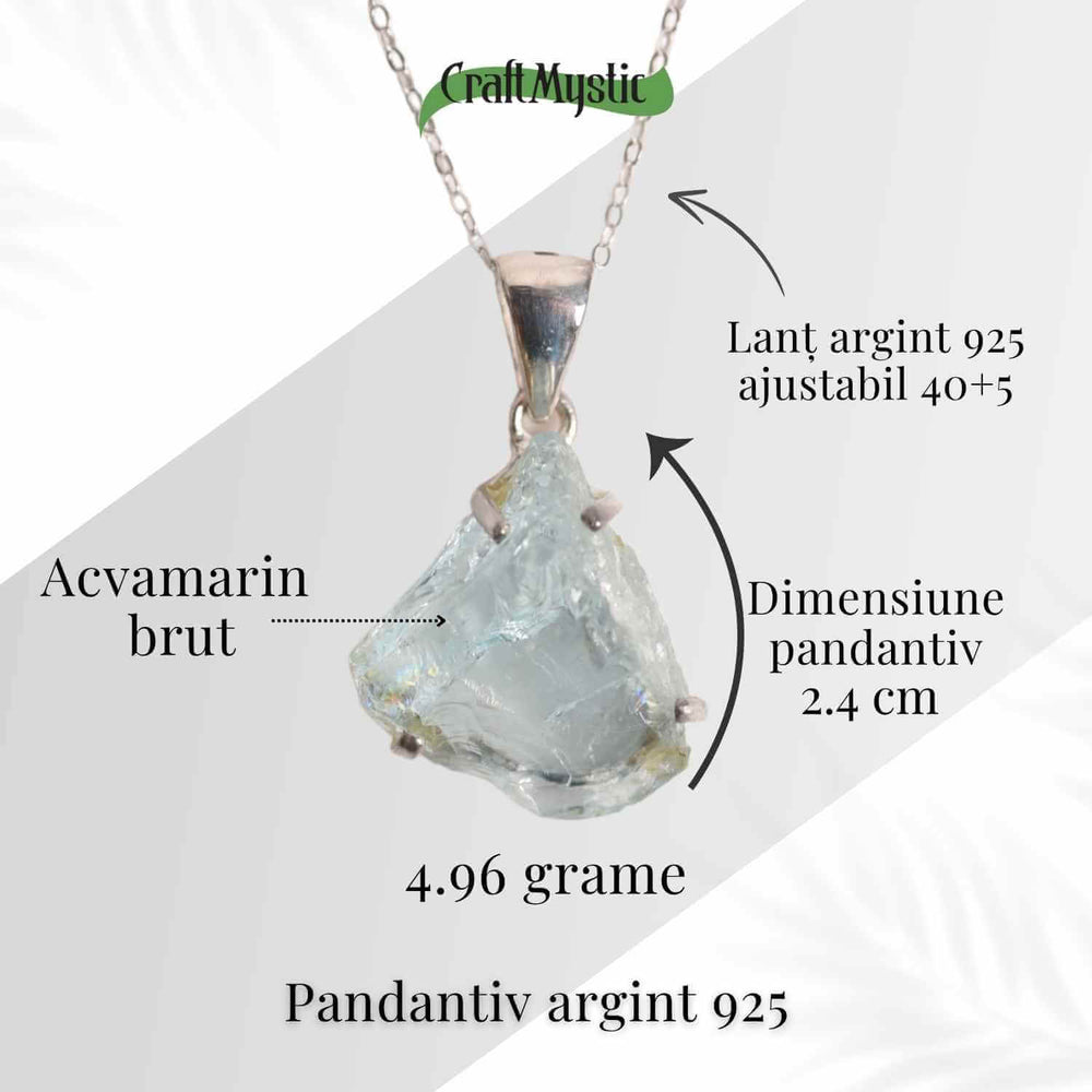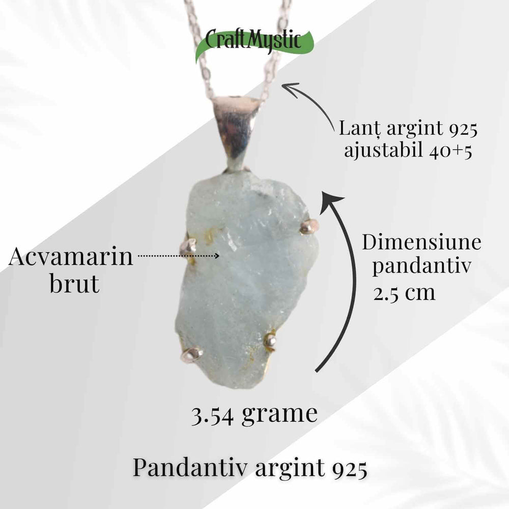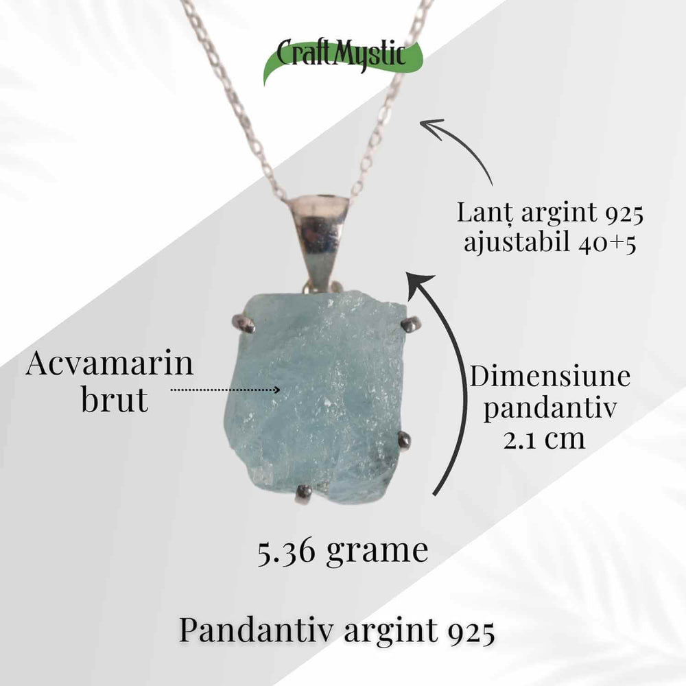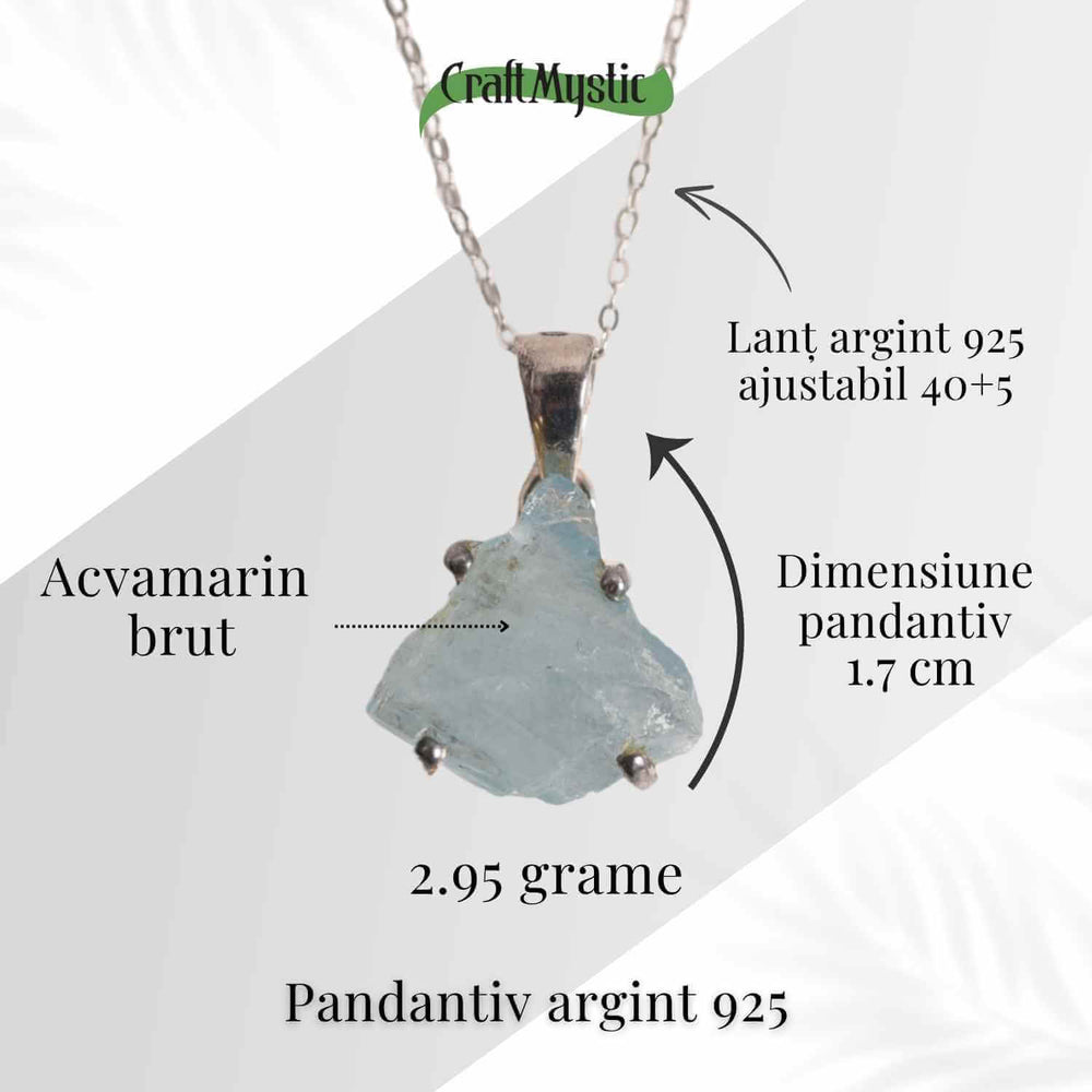 Descopera noul tau talisman unic – un colier absolut special din acvamarin brut si argint 925, pentru echilibru emotional si claritate mentala.
