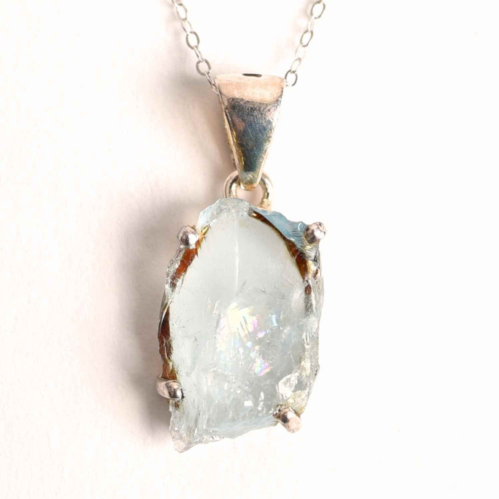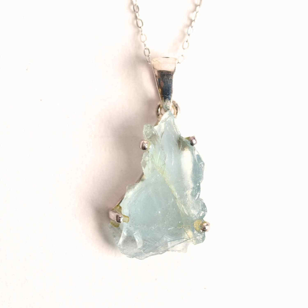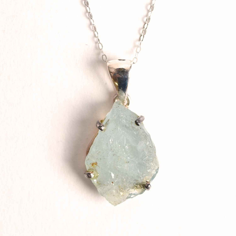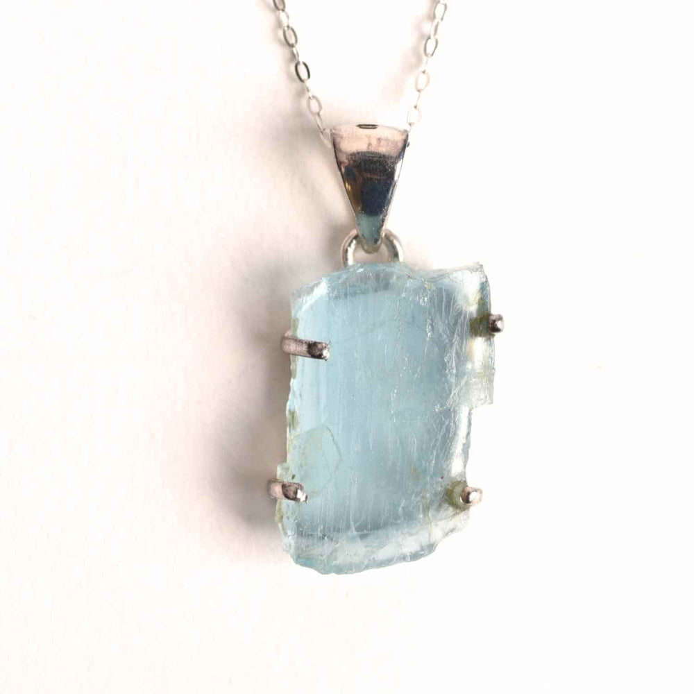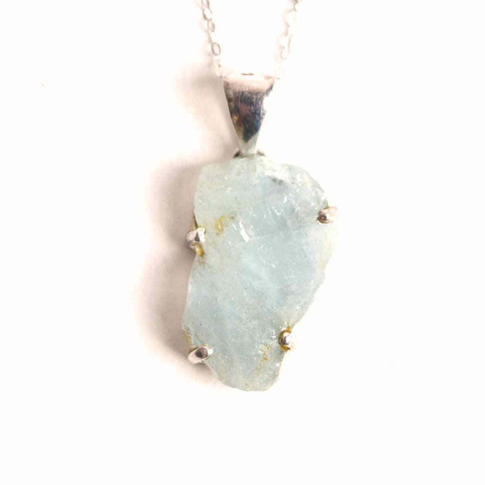 Colier Argint 925 cu Acvamarin Brut – Liniste Interioara si Claritate