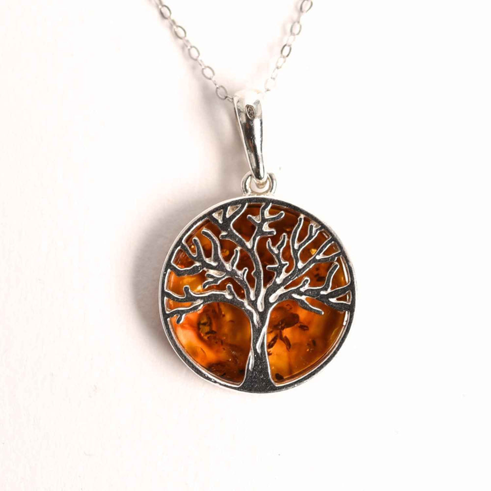 Colier argint 925 cu chihlimbar natural - copacul vietii rotund