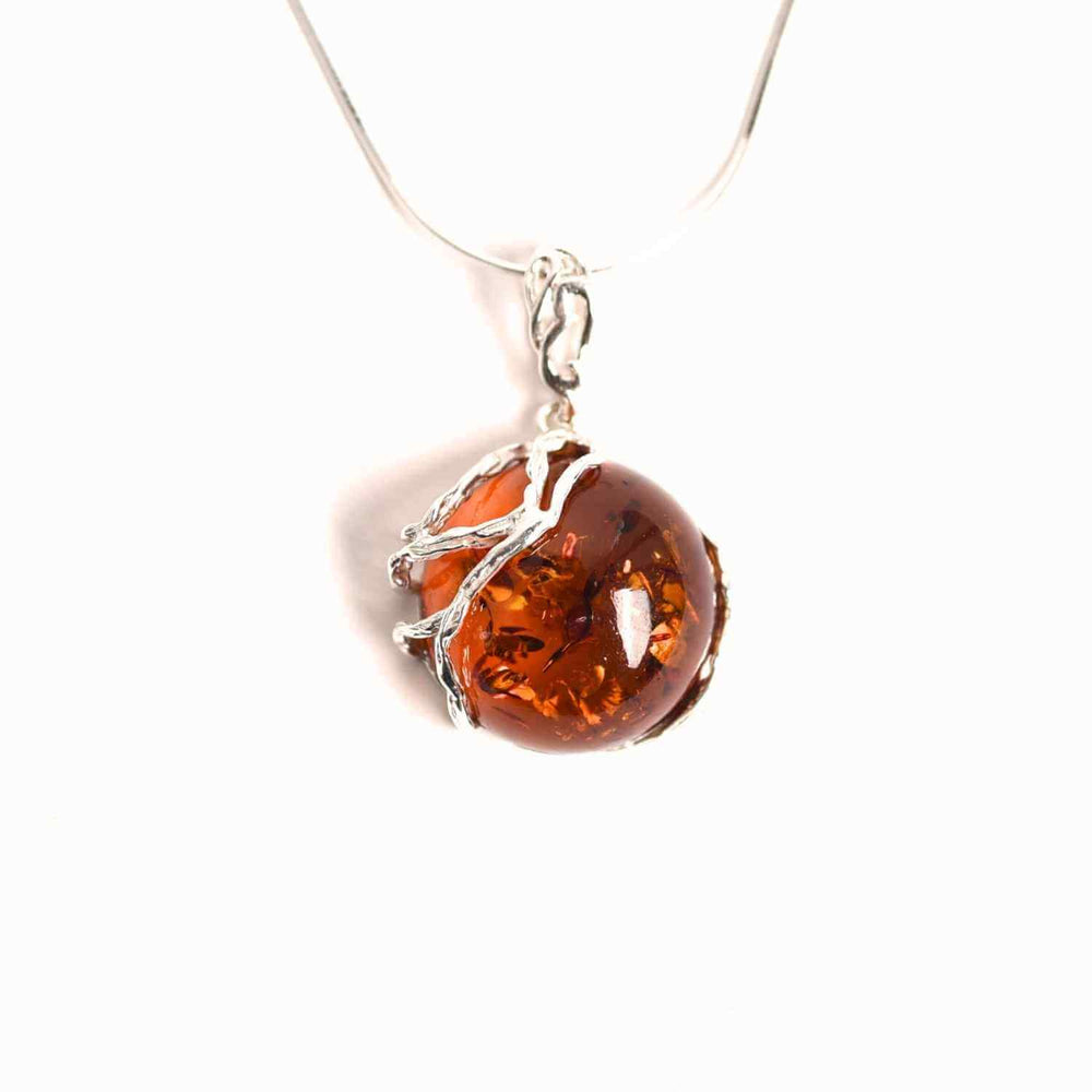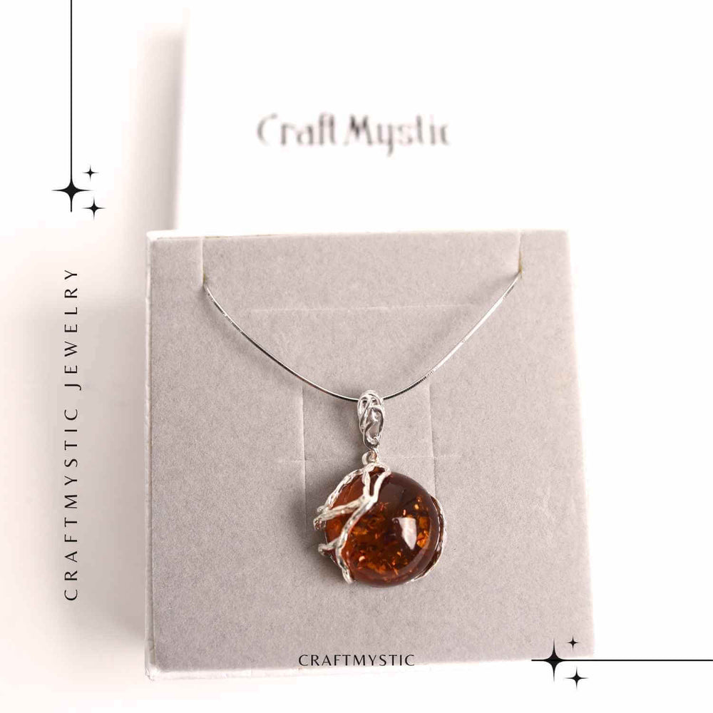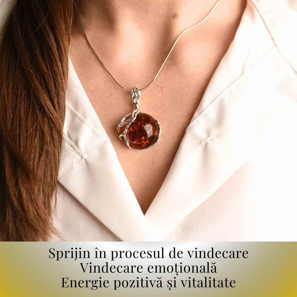 Colier din argint 925 cu piatră naturală de chihlimbar, în formă rotundă: