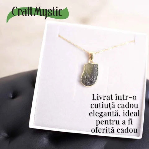 Află cum să activezi protecția absolută și transformarea interioară cu un colier unic din moldavit natural și montură elegantă din argint 925 placat cu aur de 18k.