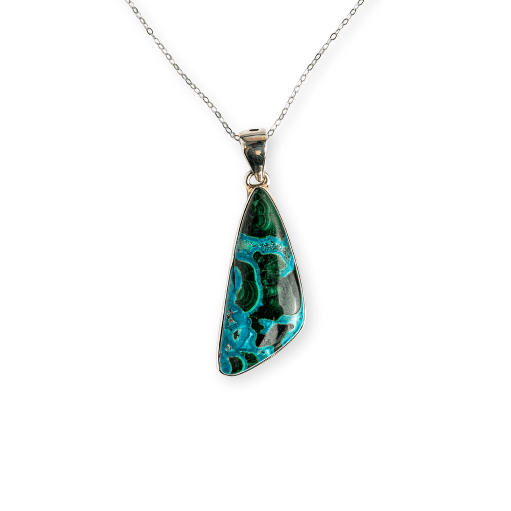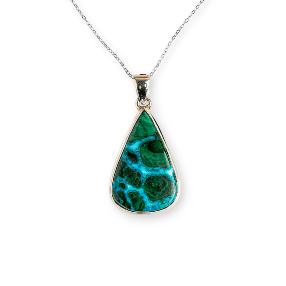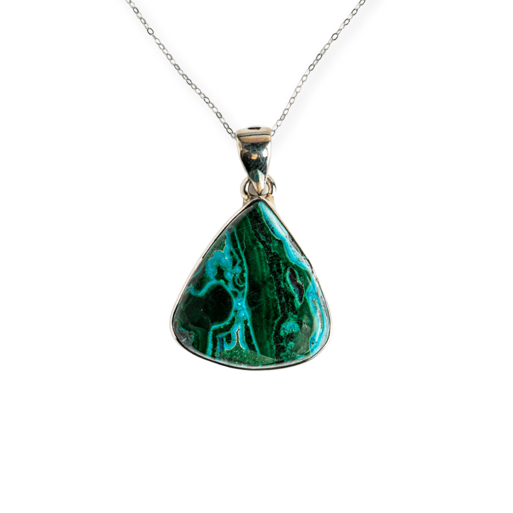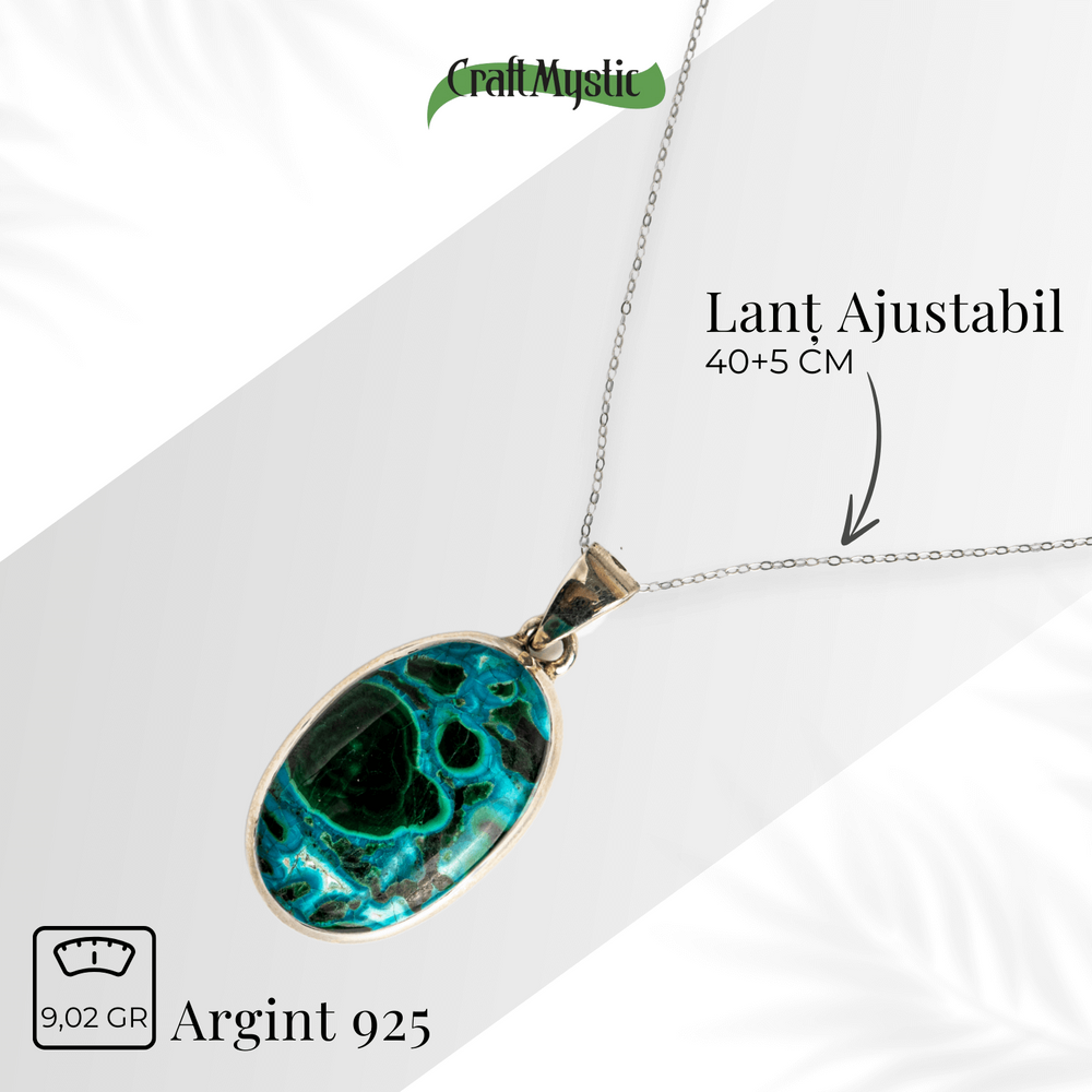 Acest colier nu este doar un accesoriu, ci un talisman energetic. Combinația de Malachit și Crisocola este recunoscută pentru echilibrarea inimii, deschiderea către compasiune, dar și pentru protecție subtilă față de energii negative.