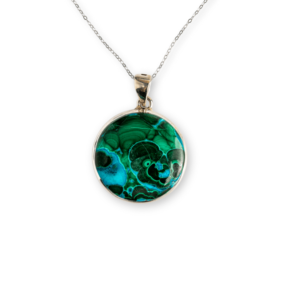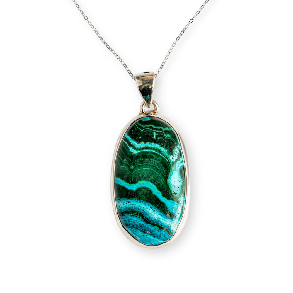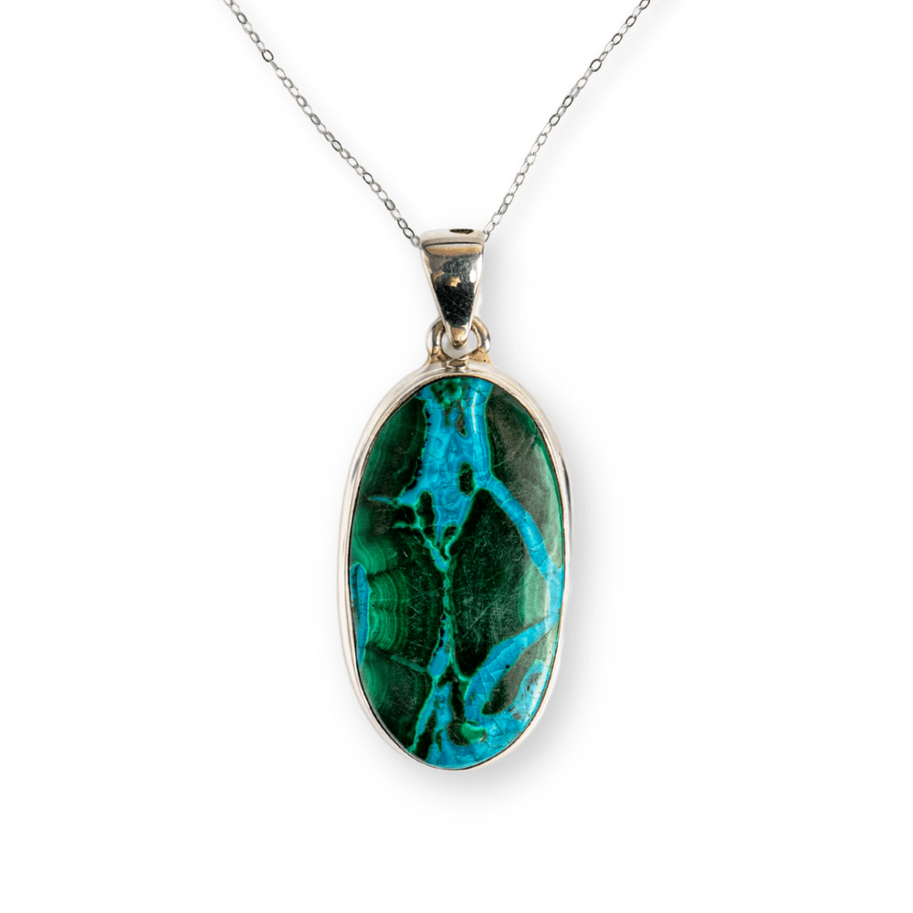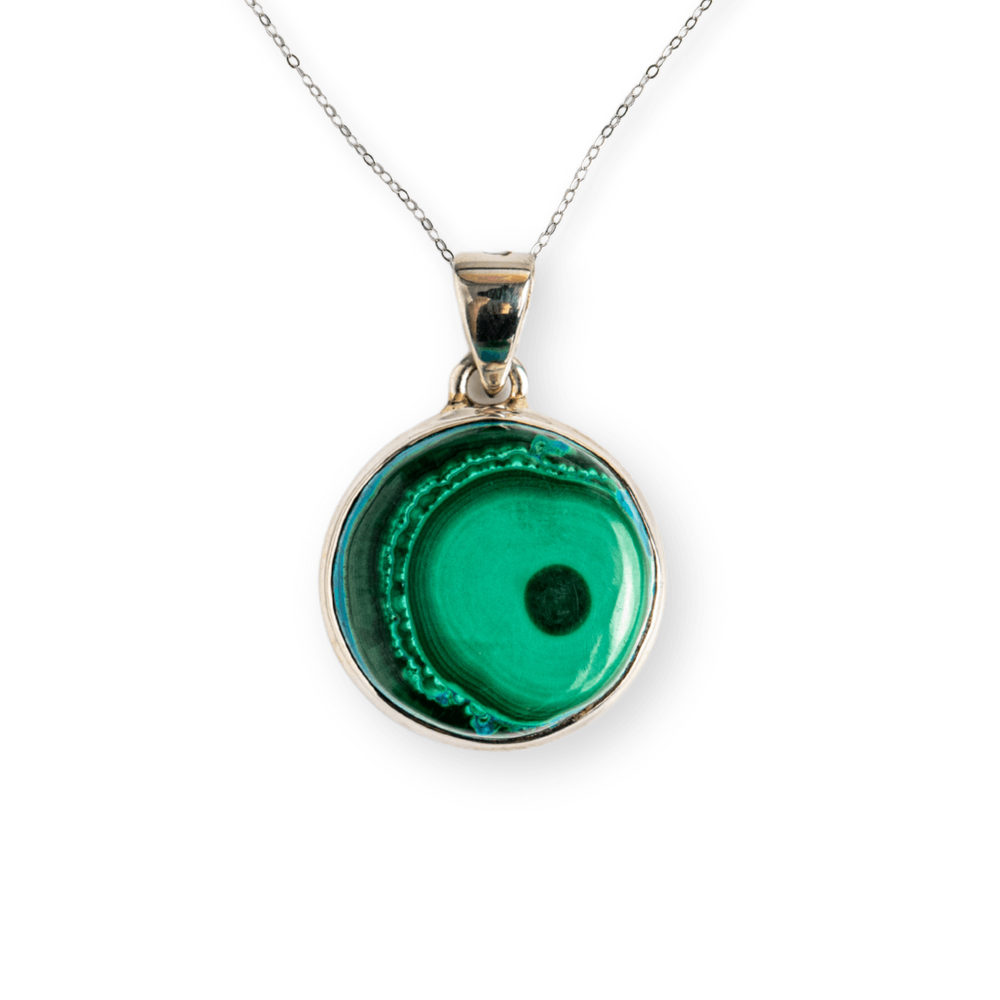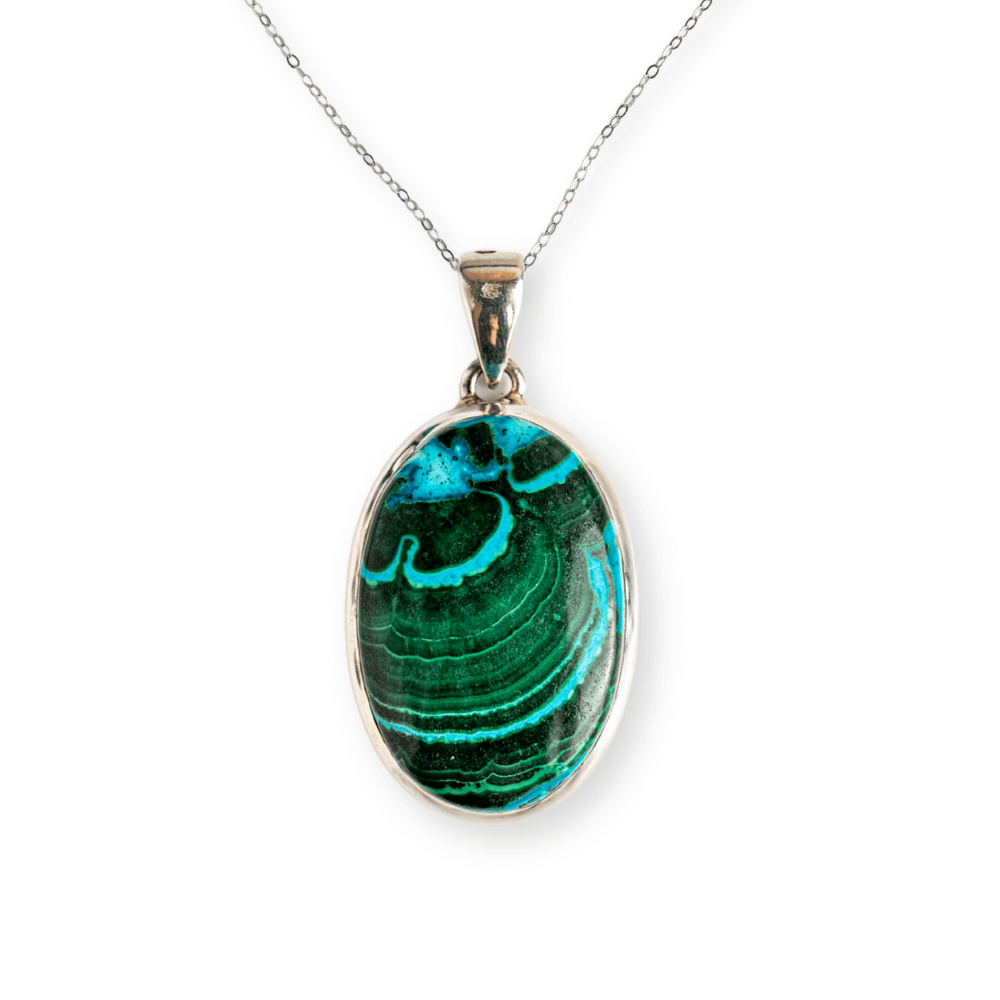Acest colier nu este doar un accesoriu, ci un talisman energetic. Combinația de Malachit și Crisocola este recunoscută pentru echilibrarea inimii, deschiderea către compasiune, dar și pentru protecție subtilă față de energii negative.