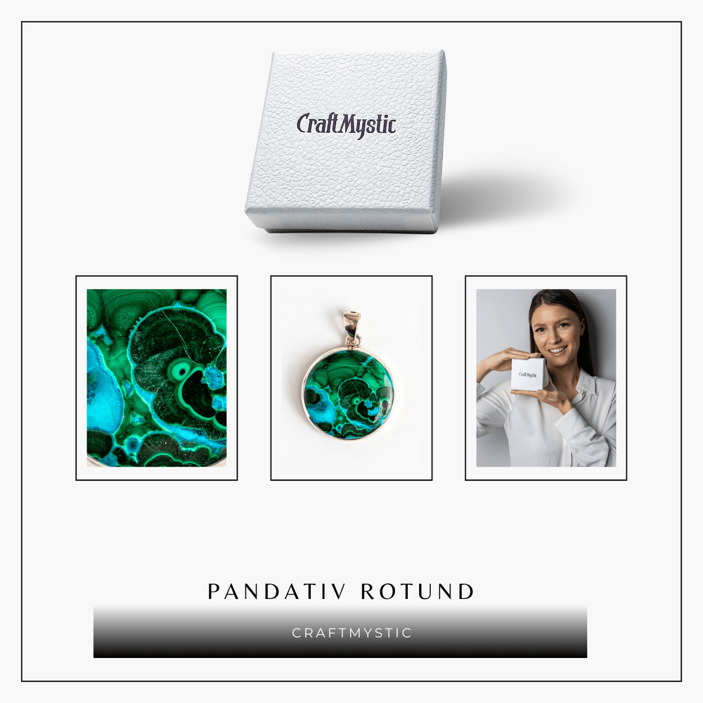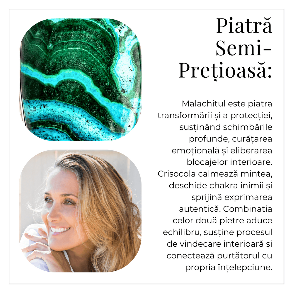 Pietre naturale: Malachit și Crisocola – pot avea forme ușor diferite (rotund, oval, triunghiular, pătrat)
