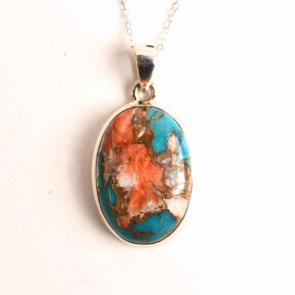 • Colier cu pandantiv oval: Turcoaz Arizona și scoică Spiny