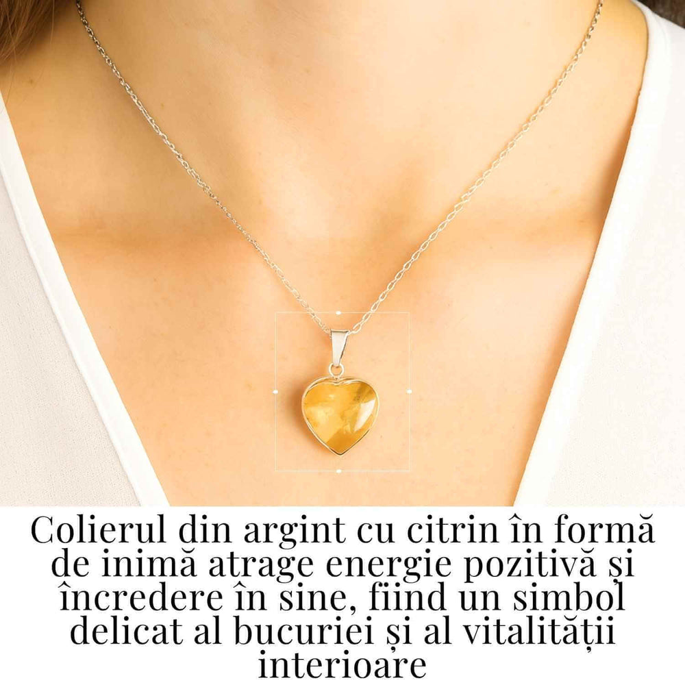 Energie si Bucurie Zilnica – Colier Inima cu Citrin si Argint 925