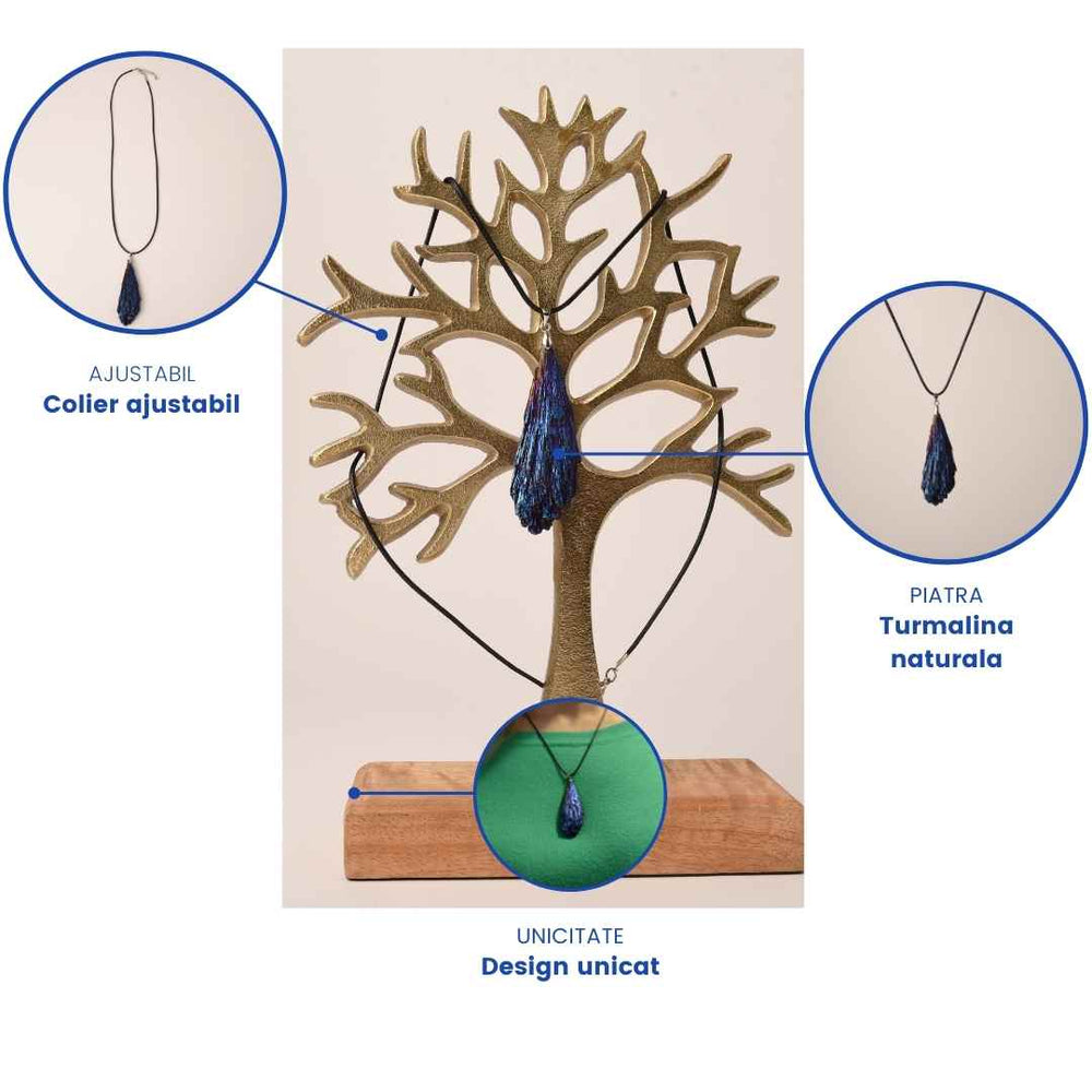 • Turmalina neagra este o piatra naturala semipretioasa cunoscuta pentru capacitatea sa de a calma emotiile negative si de a incuraja dragostea si vindecarea. Acest colier cu cristal turmalina electroplacat curcubeu este perfect pentru cei care au nevoie de echilibru emotional si vindecare;