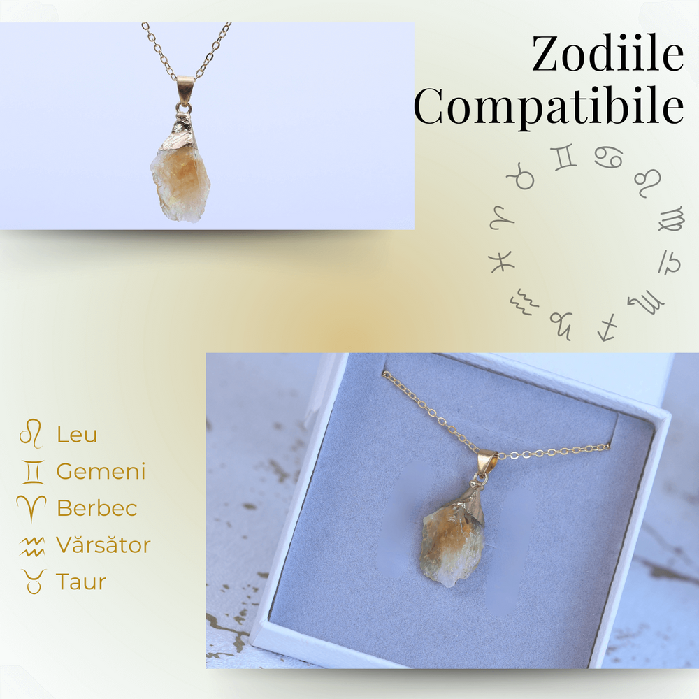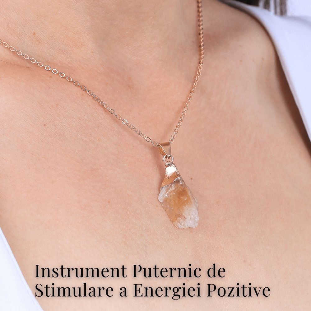 Principalele beneficii ale Colierului cu lanț metalic ajustabil auriu și pandantiv cu citrin brut:
