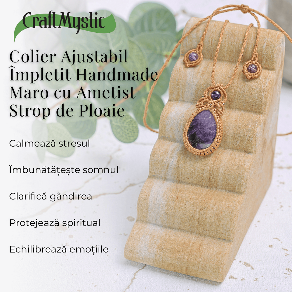 Colier Ajustabil Handmade cu Ametist "Strop de Ploaie" – Maro, Lungime Maxima 45 cm este în așteptare și va fi expediat de îndată ce este din nou în stoc.