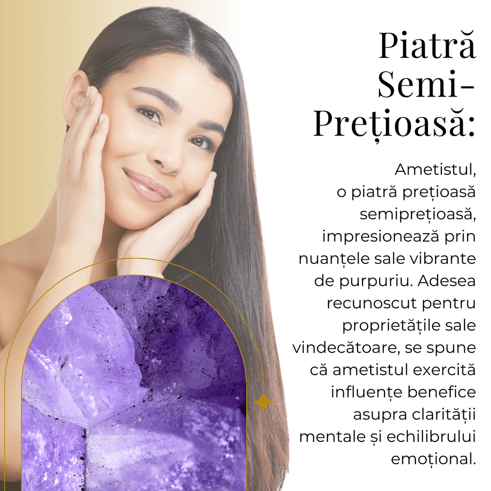 Ametistul este cunoscut pentru proprietatile sale de calmare si purificare. Acest cristal ajuta la eliminarea stresului mental si a gandurilor negativiste, promovand claritatea si relaxarea. De asemenea, ametistul este considerat util in echilibrarea starilor emotionale si in ameliorarea insomniei.
