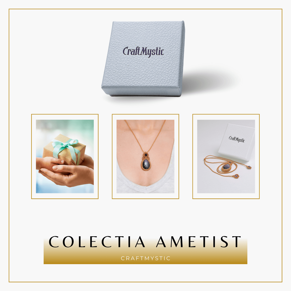 Descopera frumusetea si beneficiile cristalului de Ametist cu acest colier ajustabil, lucrat manual. Perfect pentru a adauga o nota de eleganta naturala si rafinament oricarei tinute, colierul nostru este un accesoriu esential pentru orice iubitor de pietre semipretioase.