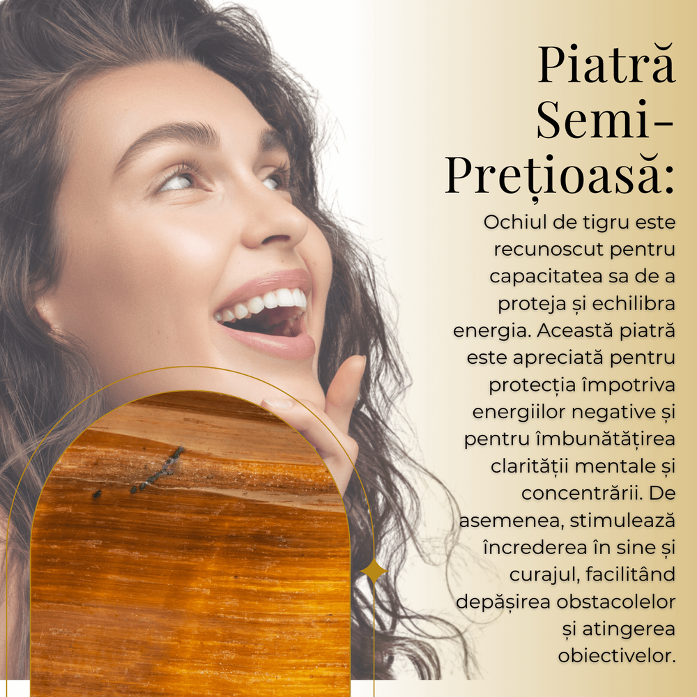Ochiul de Tigru este cunoscut pentru proprietatile sale de protectie, fiind adesea folosit pentru a respinge energia negativa si pentru a aduce claritate mintala posesorului sau. Cristalul stimuleaza vointa si curajul, imbunatatind totodata concentrarea si capacitatea de a lua decizii. Este ideal pentru cei care cauta sa isi echilibreze emotiile in timpul unor perioade stresante.