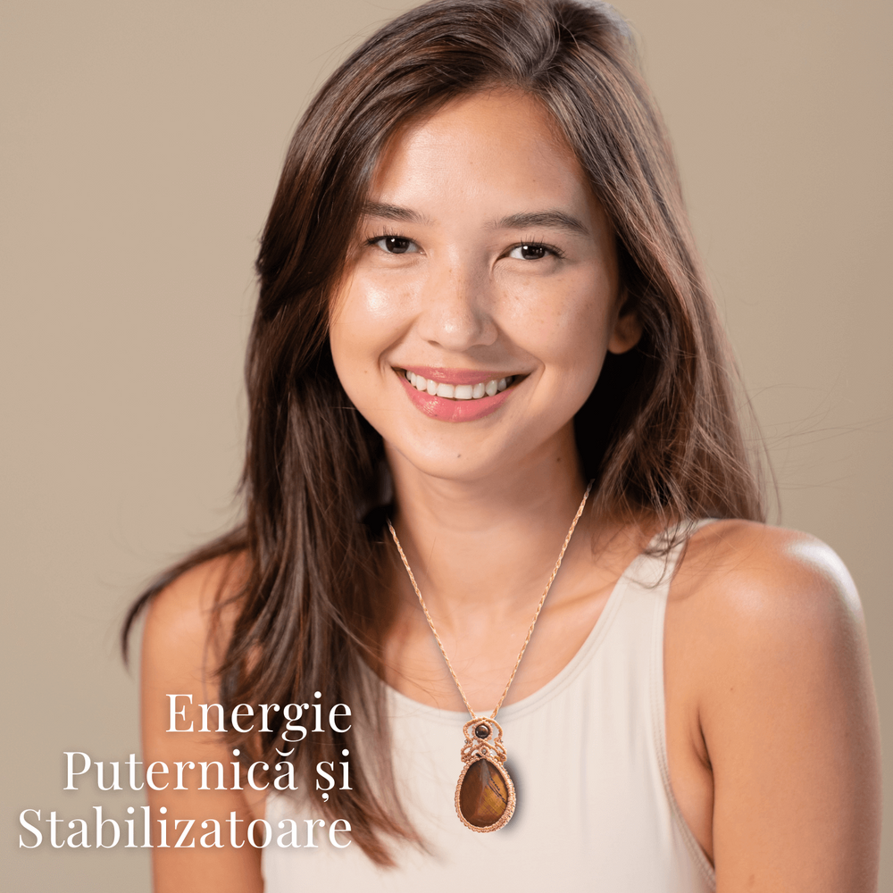 Acest colier unic, cu un design impletit si ajustabil, este incorporat cu o piatra semipretioasa Ochi de Tigru in forma de strop de ploaie, oferind nu doar un accesoriu elegant, dar si un talisman de protectie si claritate. Perfect pentru a aduce un plus de stil oricarui outfit, colierul nostru este o piesa de rezistenta pentru cei care apreciaza bijuteriile cu semnificatie profunda.
