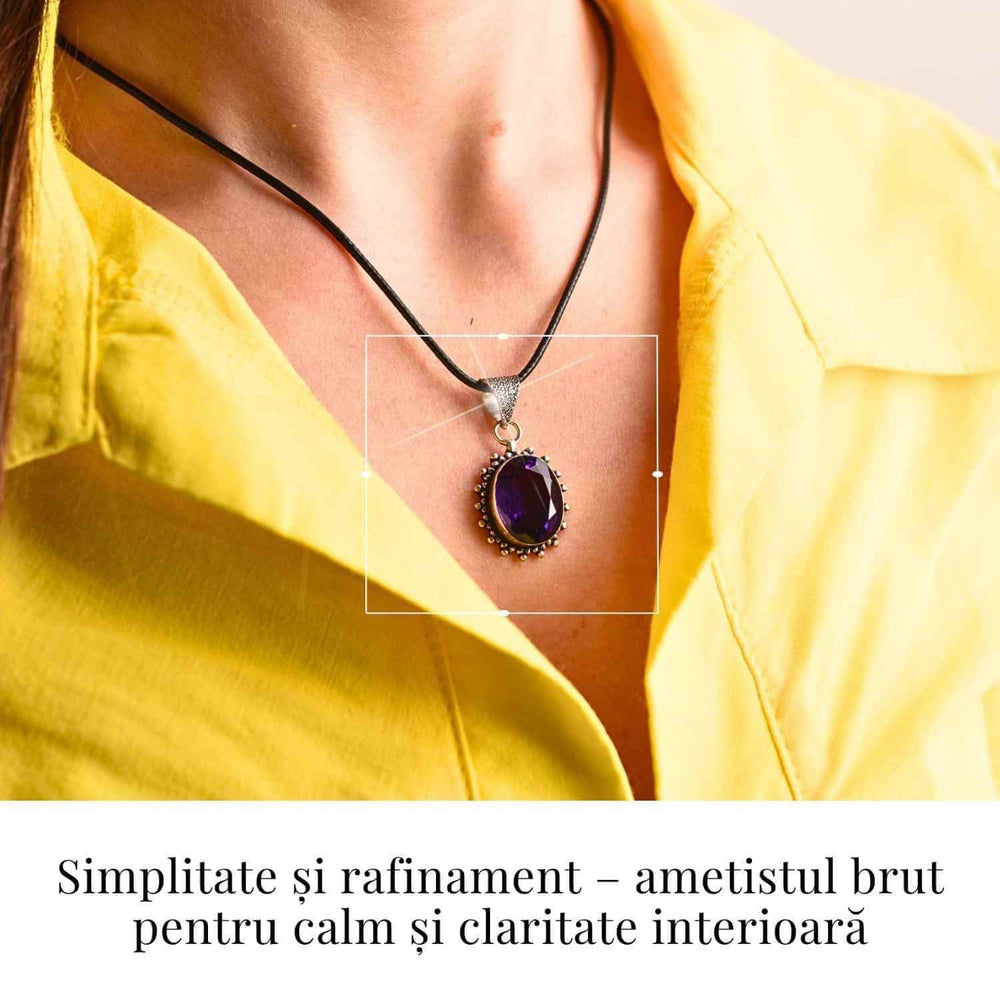 Colier Ametist Fatetat Oval Floare – Eleganta si Calm Interior