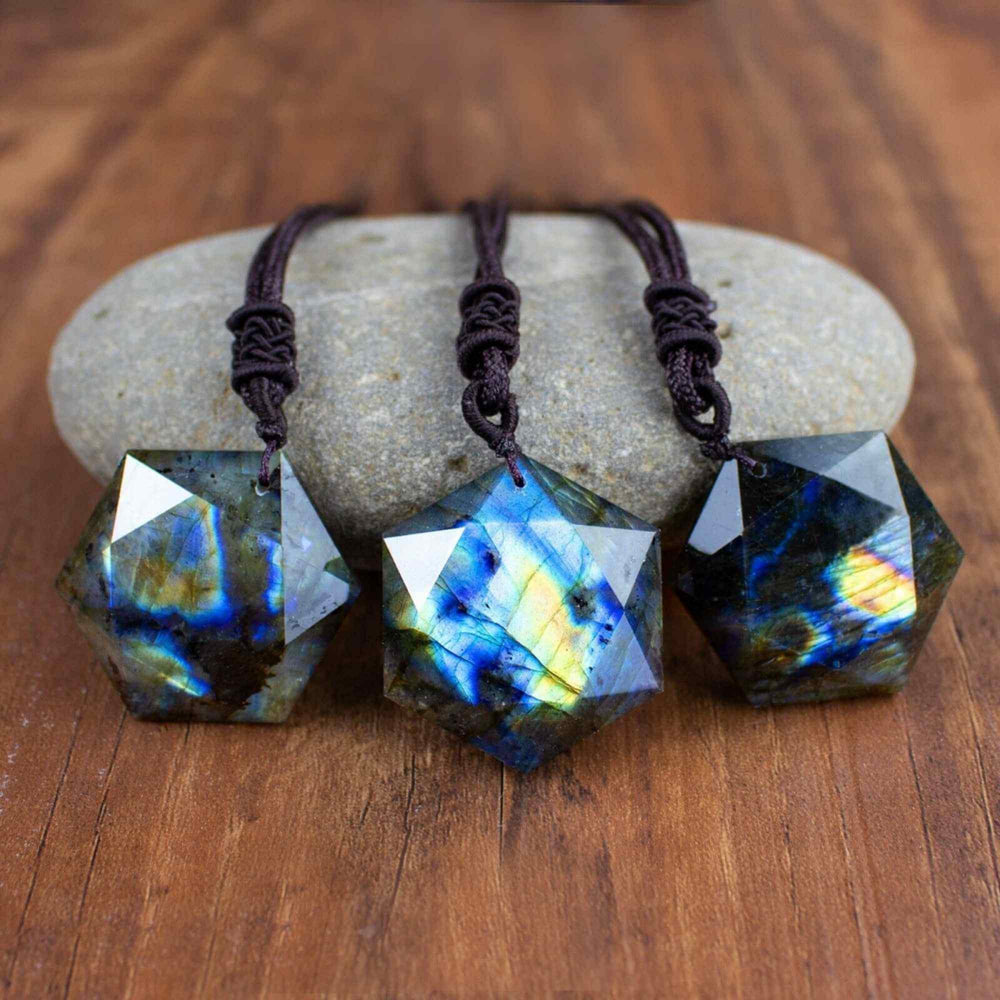 Colier Amuleta cu Hexagrama din Labradorit Natural - Dezvaluie-ti Puterile Magice