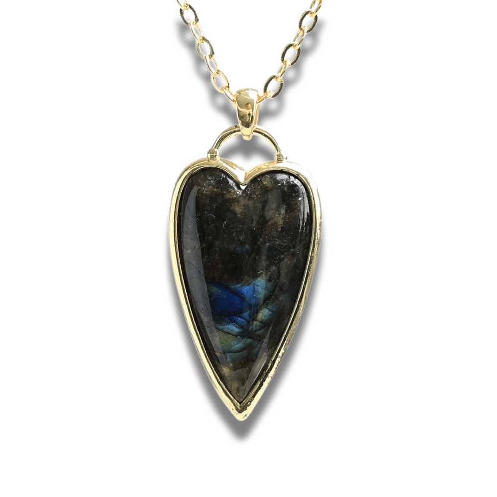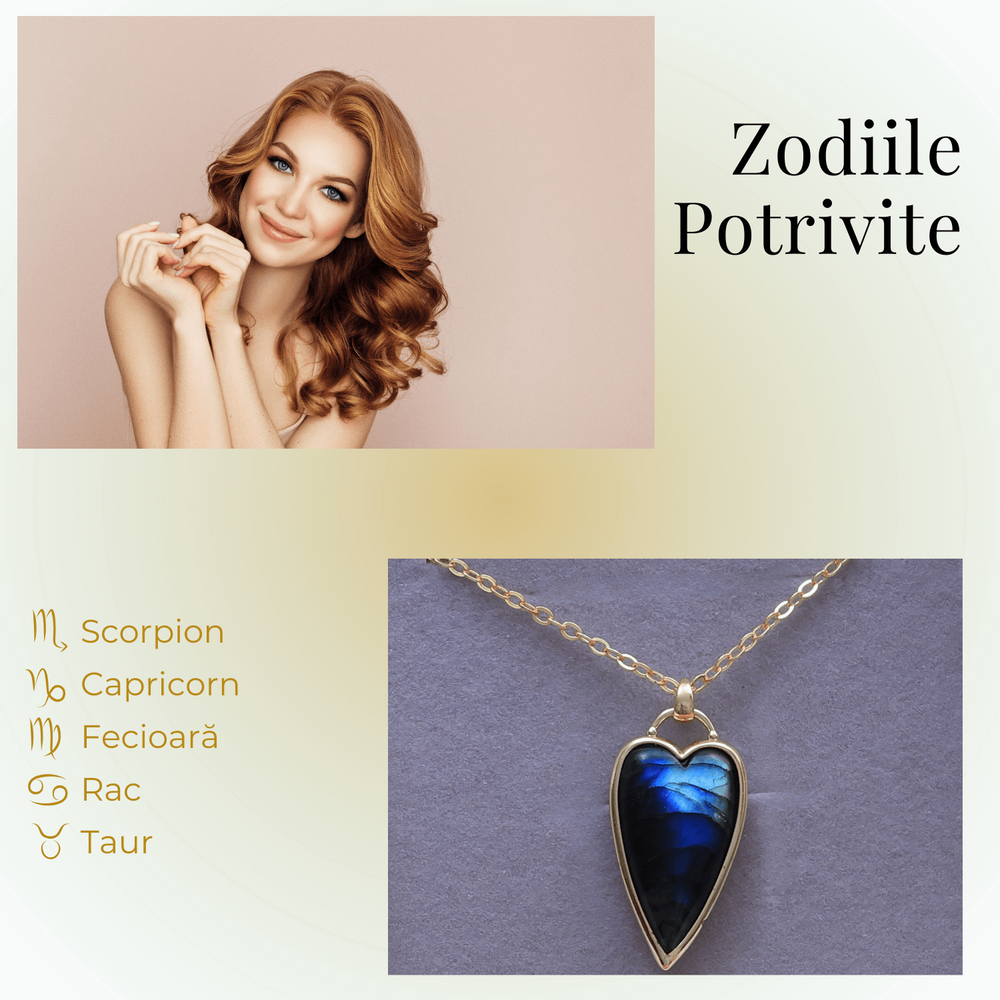 - Pandantiv: Labradorit natural în formă de inimă.