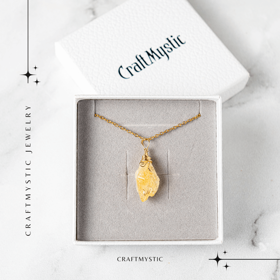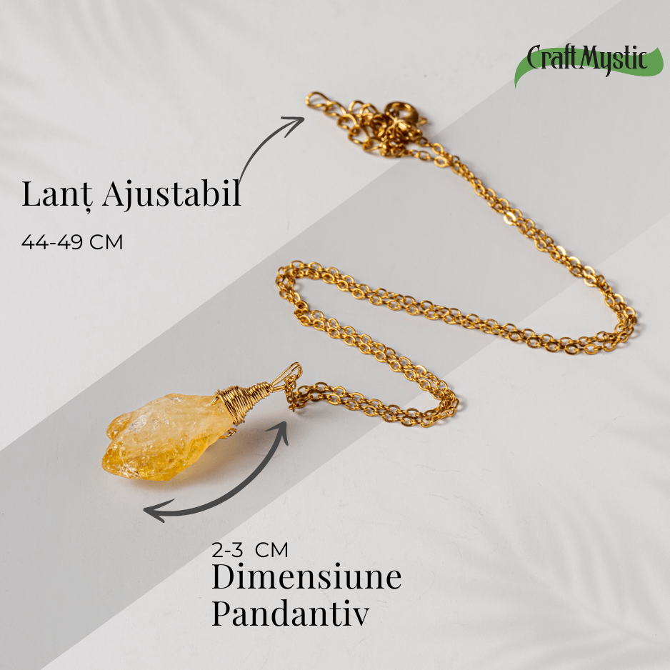 Colier auriu cu Citrin Brut – Prosperitate si Energie Pozitiva