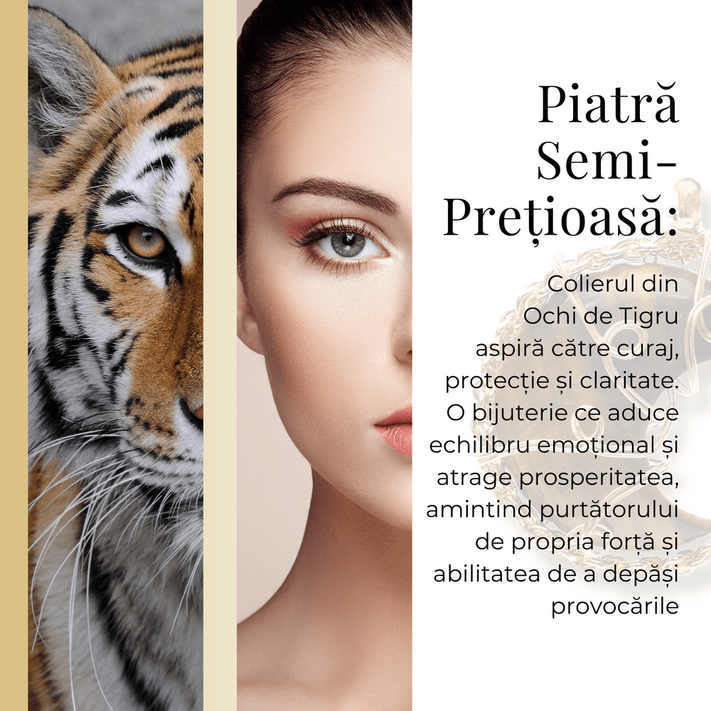 Cristalul Ochi de Tigru este atent selectat pentru a asigura o culoare vibranta si o calitate superioara, conferind fiecarui colier un caracter unic.