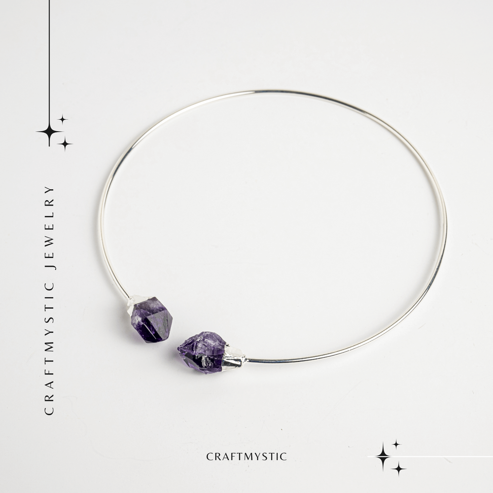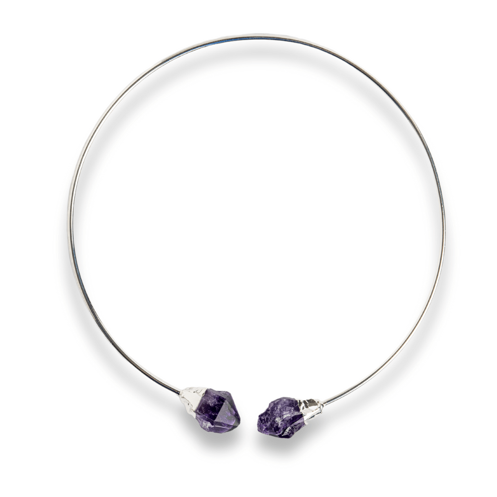 Colier Choker Argintiu cu Piatra Ametist Bruta - Echilibrare si Spiritualitate