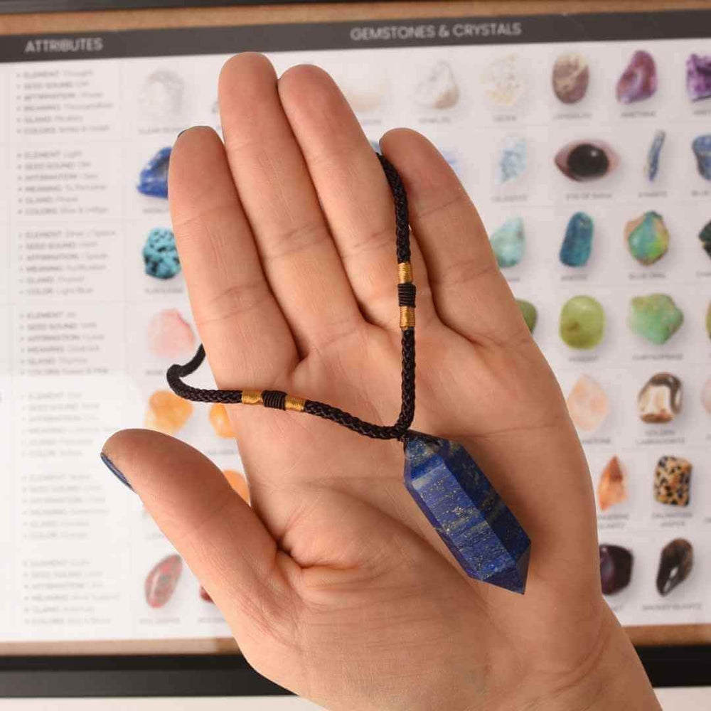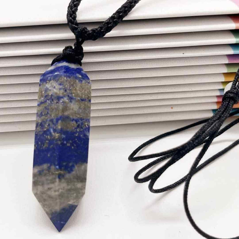 Colier cu cristal vindecator Labradorit 4-5 cm, in forma hexagonala cu dublu varf si saculet satin negru – pentru protectie, vointa si noroc - Lapiz Lazuli este în așteptare și va fi expediat de îndată ce este din nou în stoc.