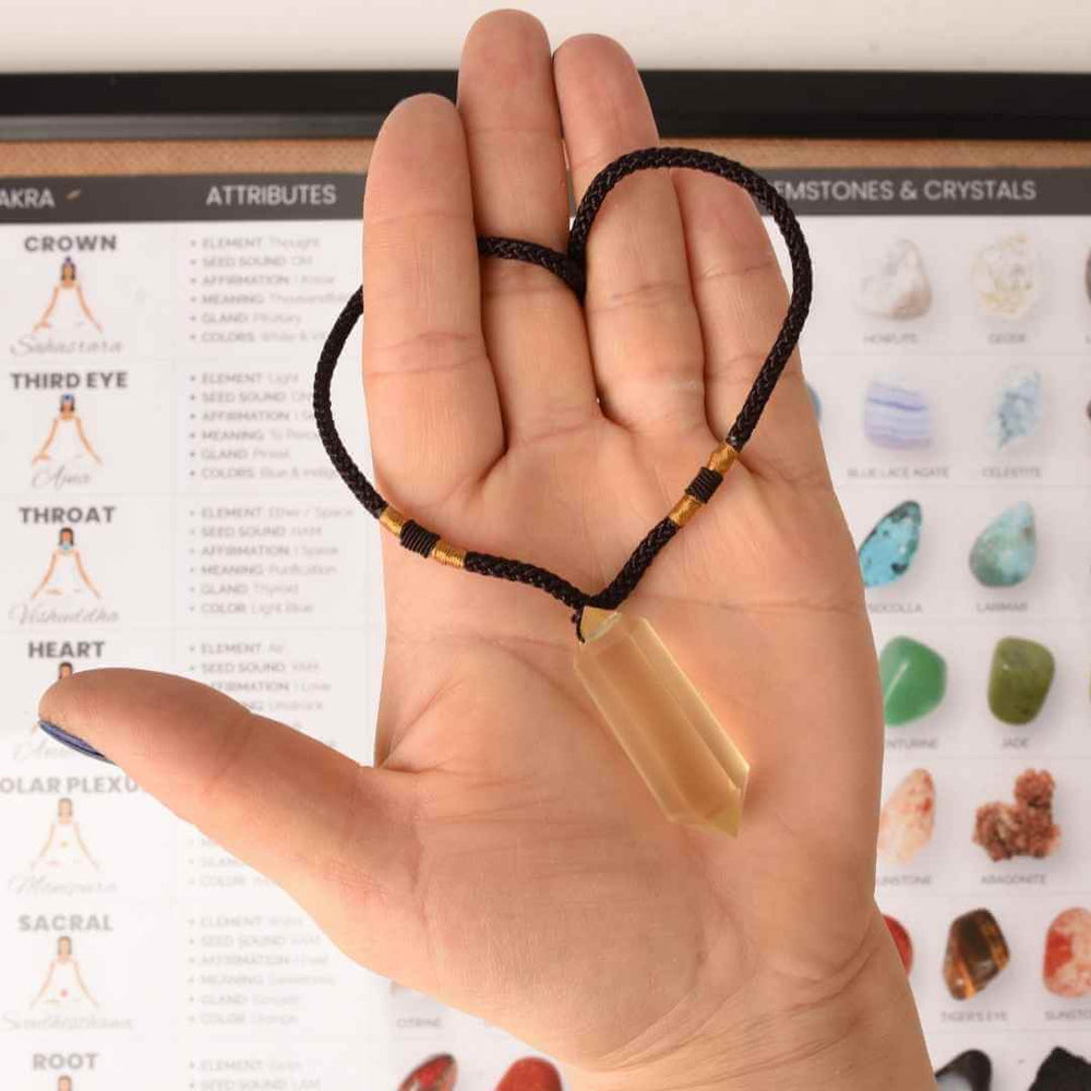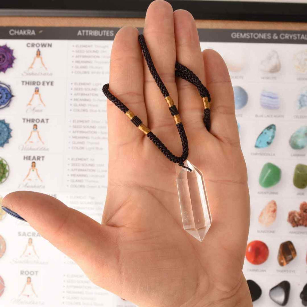 - Ce primesti - Un colier cu pandantiv de cristal hexagonal cu dublu varf, absolut unic si fabulos si un saculet de satin negru pentru a-l mentine cu grija. Ai grija sa nu se indragosteasca lumea de el, pentru ca nu mai exista altul la fel in intreaga lume;