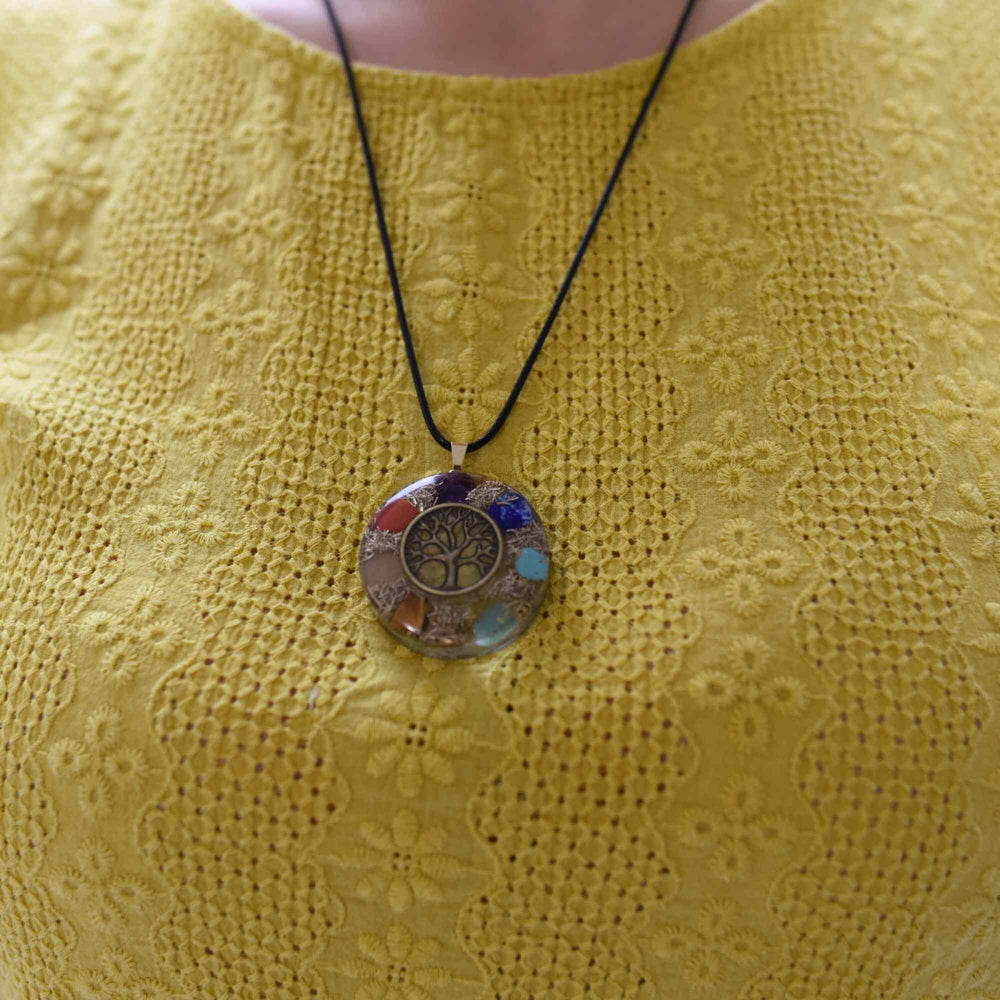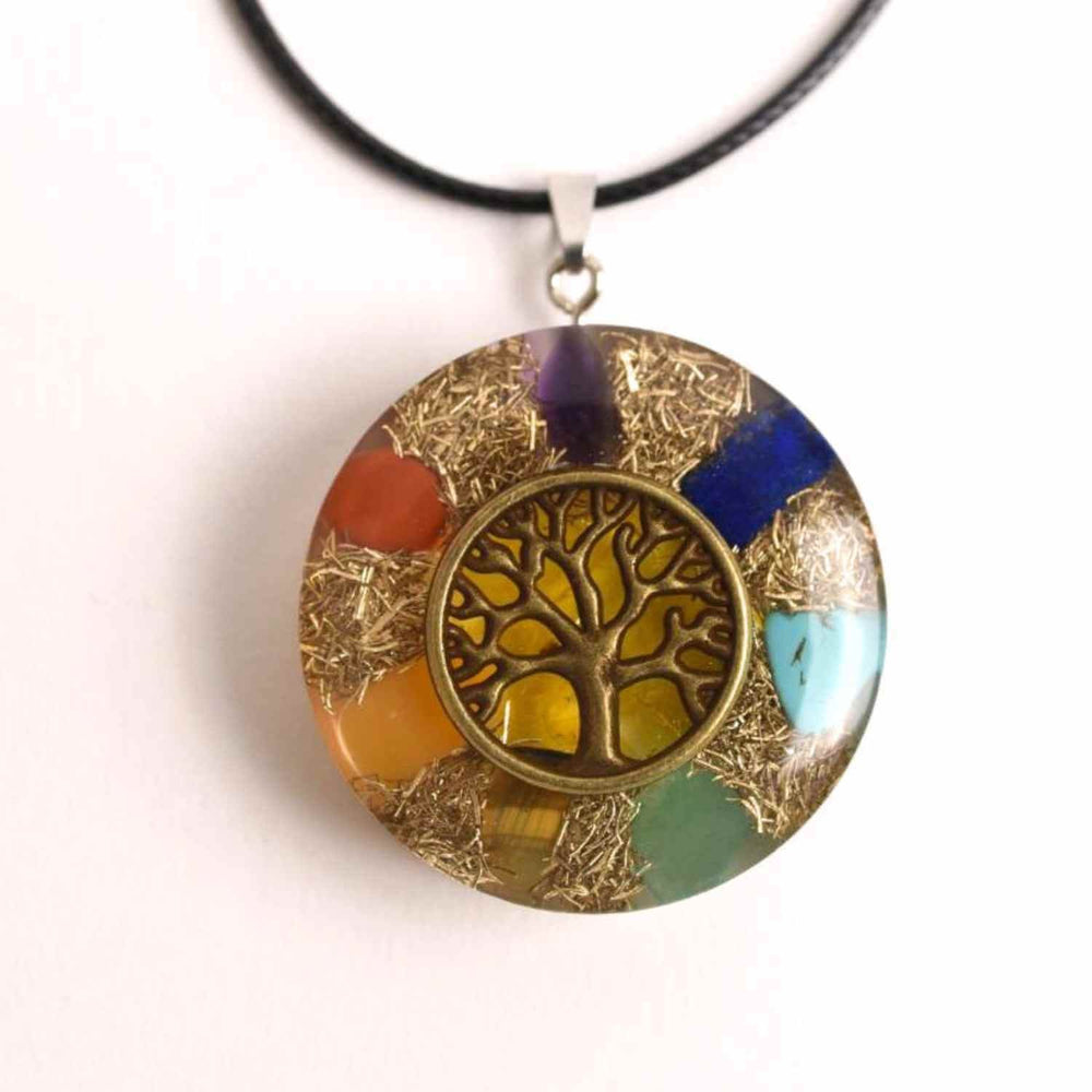 Colier cu pandantiv 35mm cu energie Orgonica cu Arborele Vietii cuprat si pietre naturale pentru cele sapte chakre