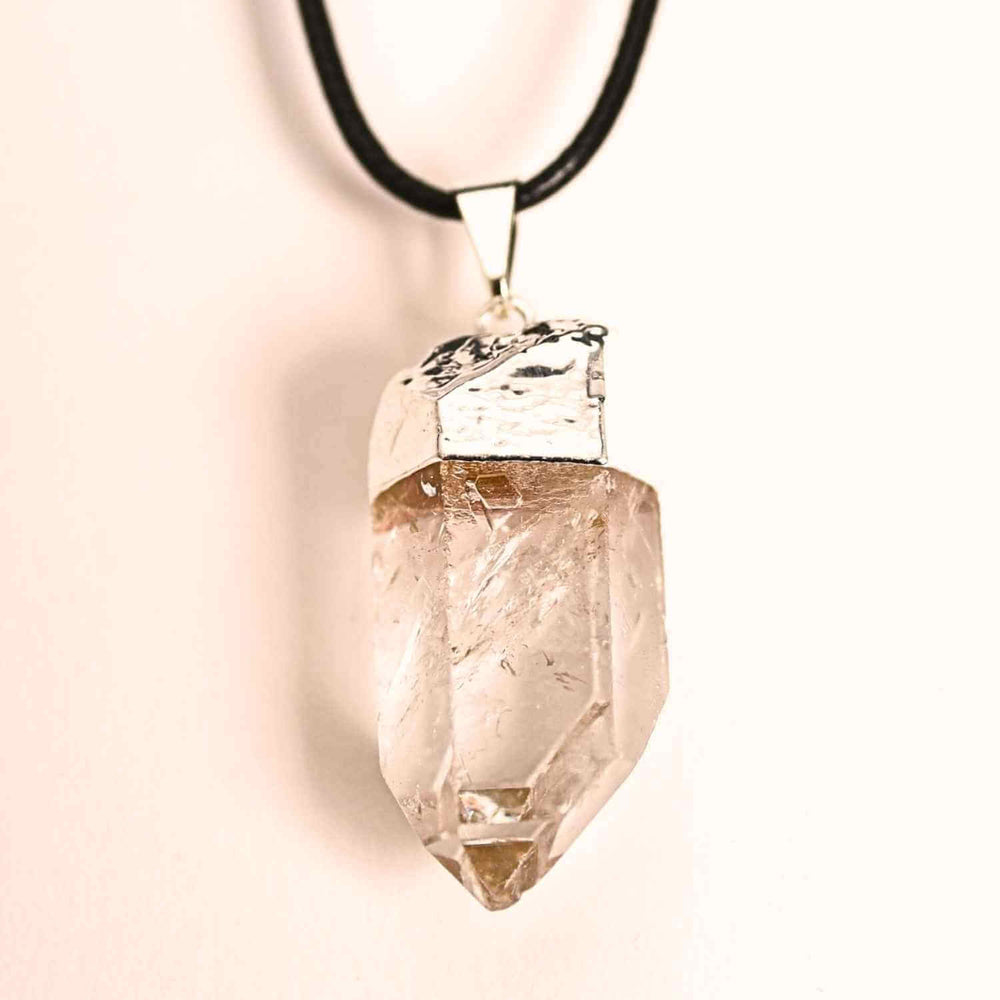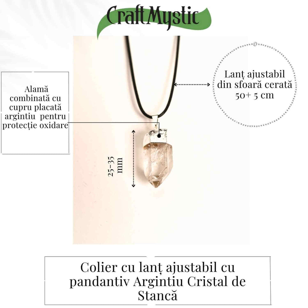Colier cu pandantiv argintiu din cuart de stanca – Claritate si Energie Pozitiva