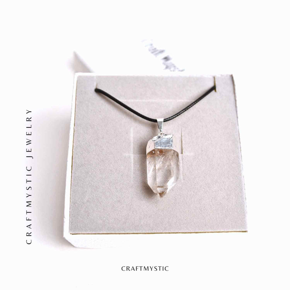 Acest colier cu pandantiv argintiu din cuart de stâncă, realizat manual, utilizează materiale premium precum alamă combinată cu cupru, placată argintiu pentru protecție împotriva oxidării. Cu un design unic, este perfect pentru cei care caută un simbol al energiei pure și al liniștii interioare.