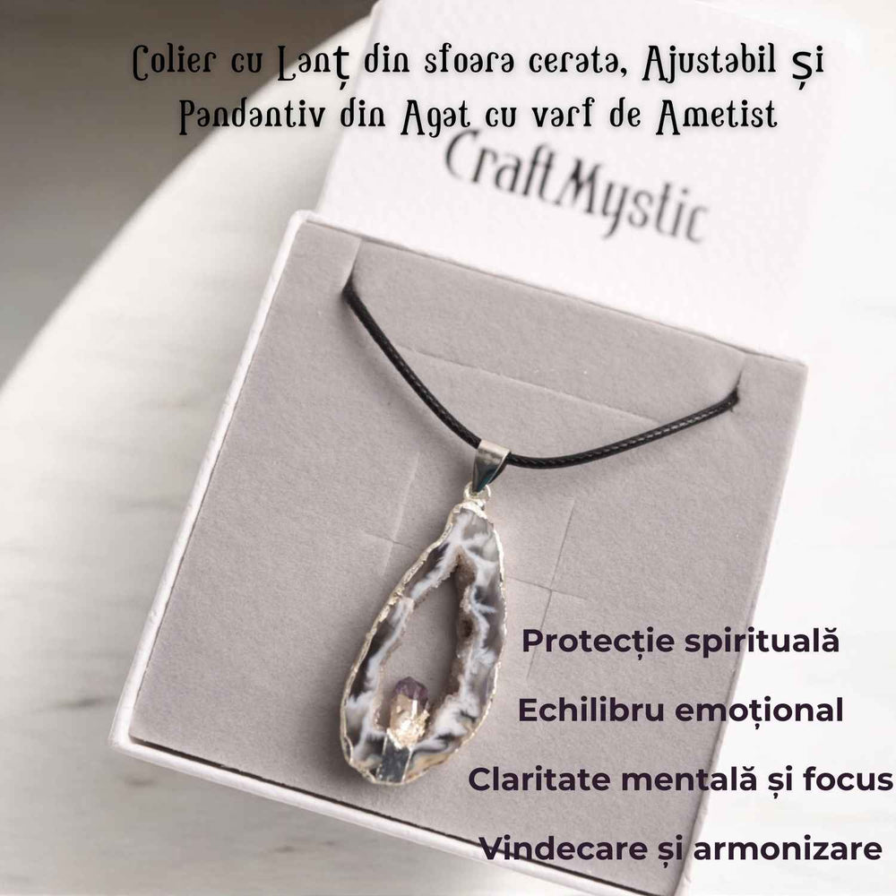 Adaugă acum Colierul cu Pandantiv din Agat și Ametist în colecția ta și bucură-te de protecție, claritate și echilibru spiritual!