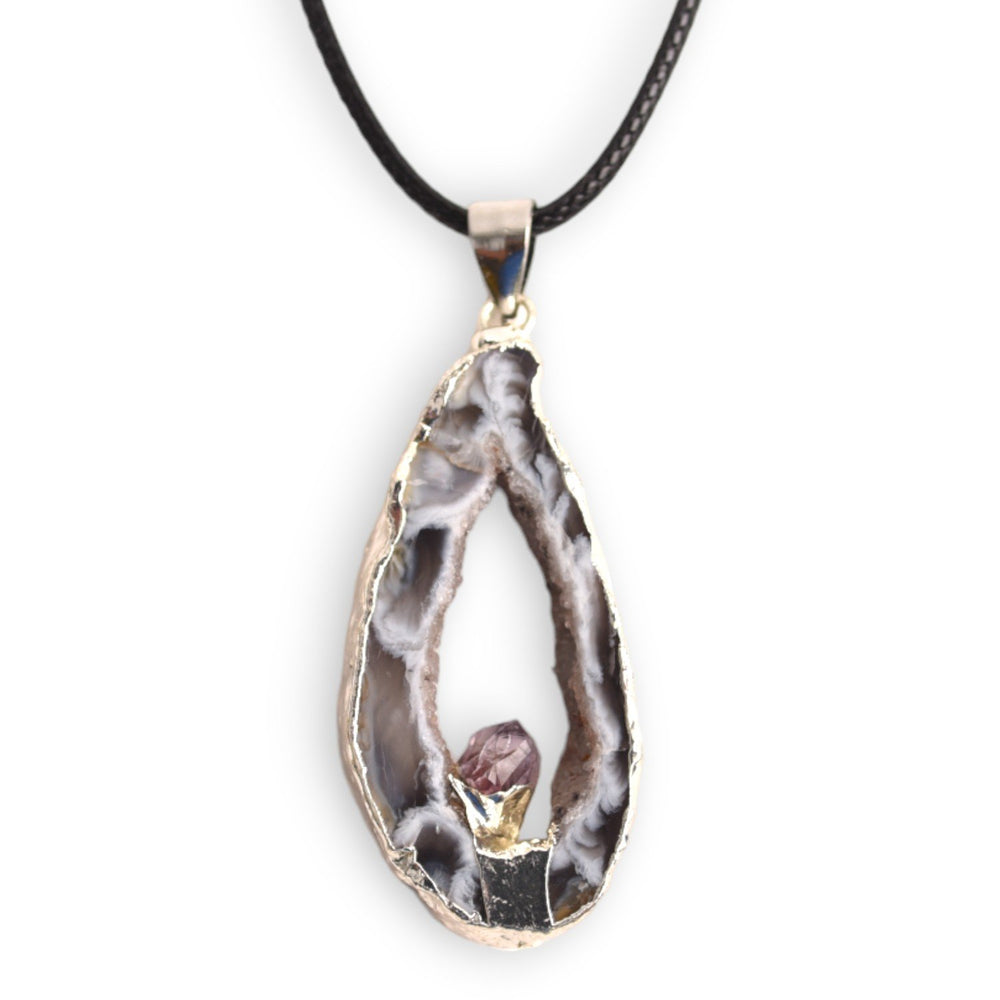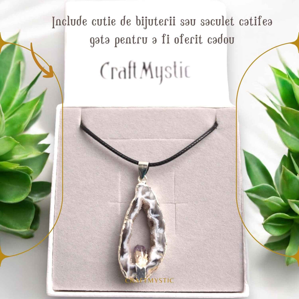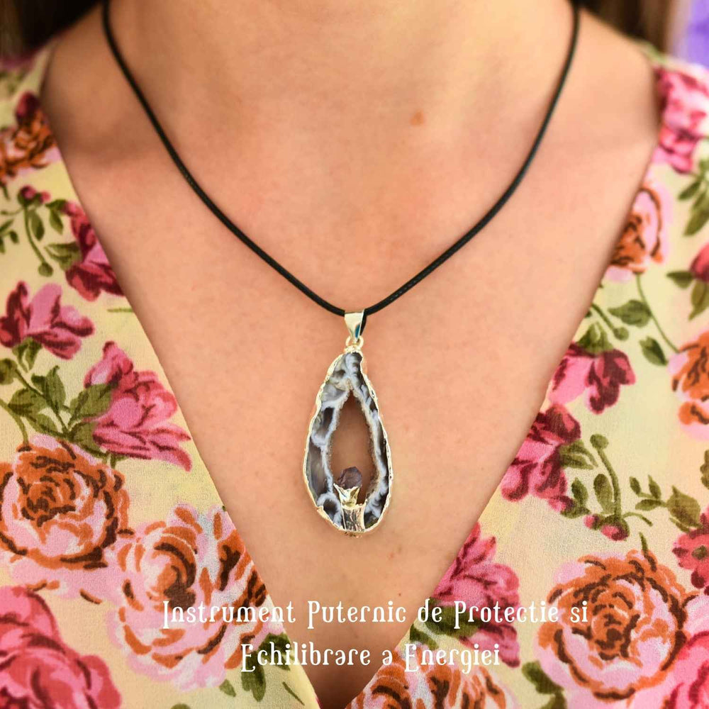 Colier cu Pandantiv din Agat si varf Ametist – Protectie si Echilibru Energetic