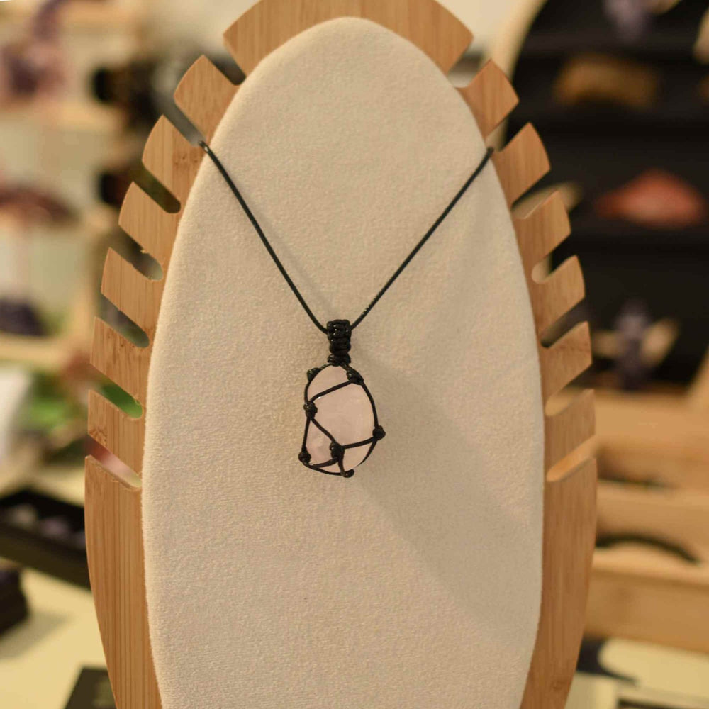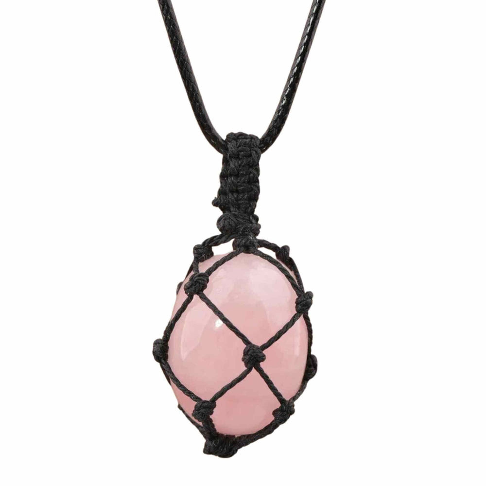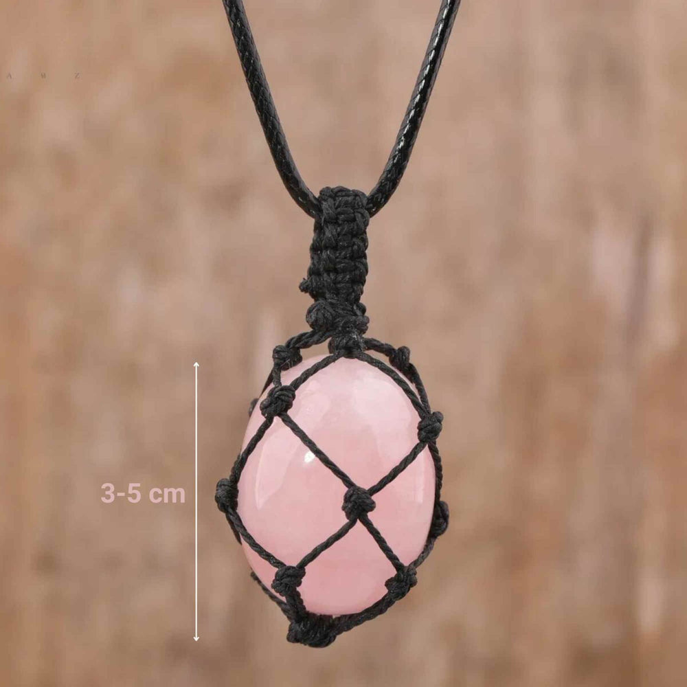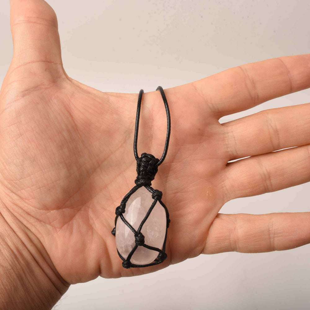 Colier cu Pandantiv din Piatra Cuart Roz si Sfoara Impletita, Bijuterie pentru Meditatie si Yoga, Cadou Special pentru Femei