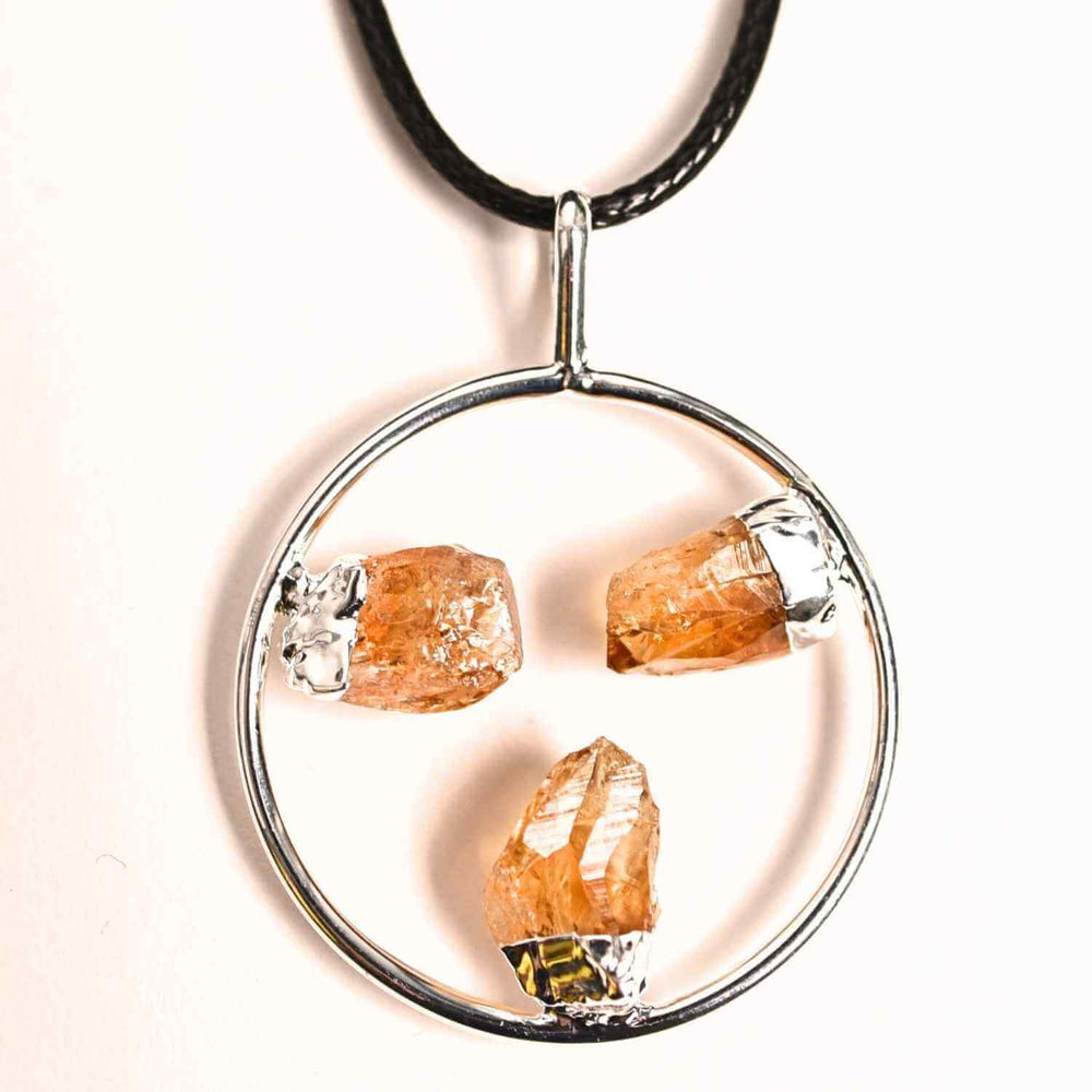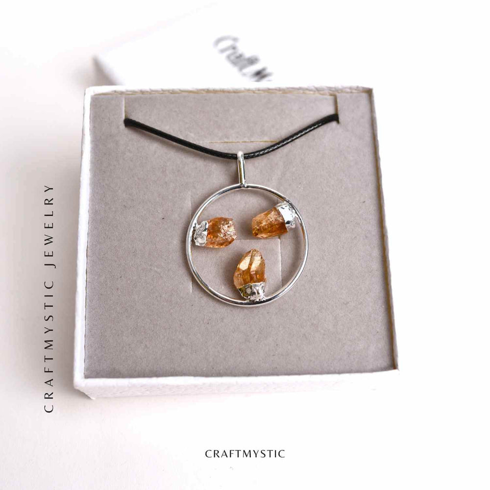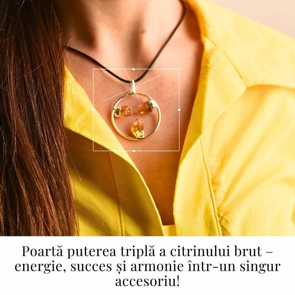 Colier cu pandantiv rotund si 3 pietre de Citrin – Abundenta si Energie Pozitiva