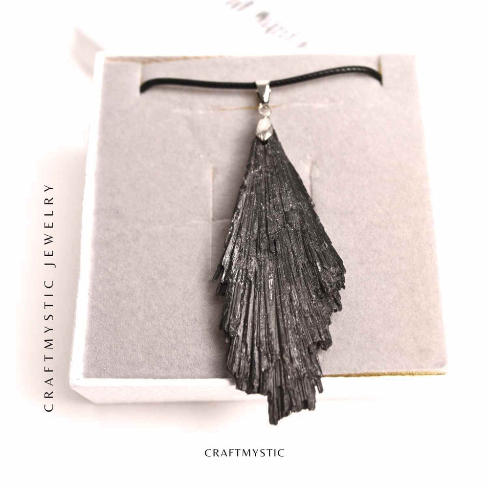 Acest colier impresionant cu pandantiv din Turmalina Neagră în formă de aripă este realizat manual și îmbină frumusețea naturală a pietrelor autentice cu un design sofisticat. Pandantivul, de dimensiuni între 65-75 mm, este fixat pe un lanț ajustabil de 50-55 cm, perfect pentru orice ținută. Materialele premium, precum alama placată argintiu, oferă rezistență și protecție împotriva oxidării, garantând longevitatea și strălucirea produsului.