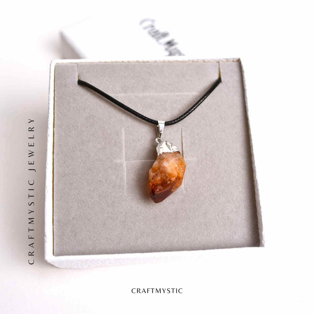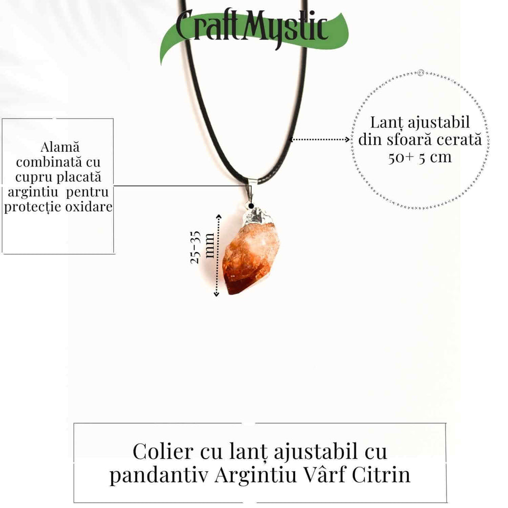 Colier cu pandantiv varf Citrin argintiu – Energie si Prosperitate
