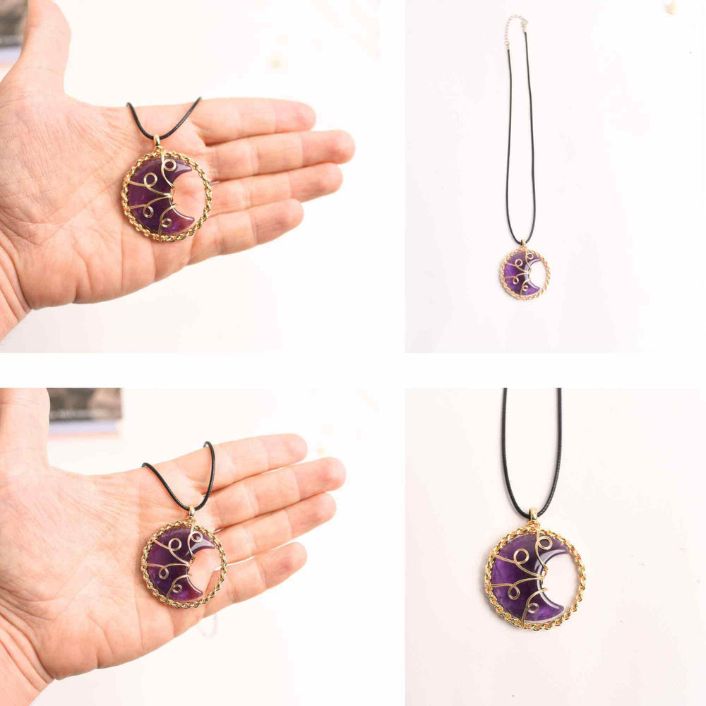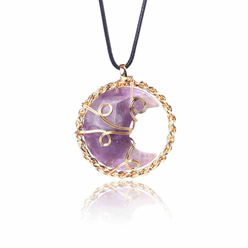 1 x Colier auriu cu semiluna din rasina naturala si piatra de ametist