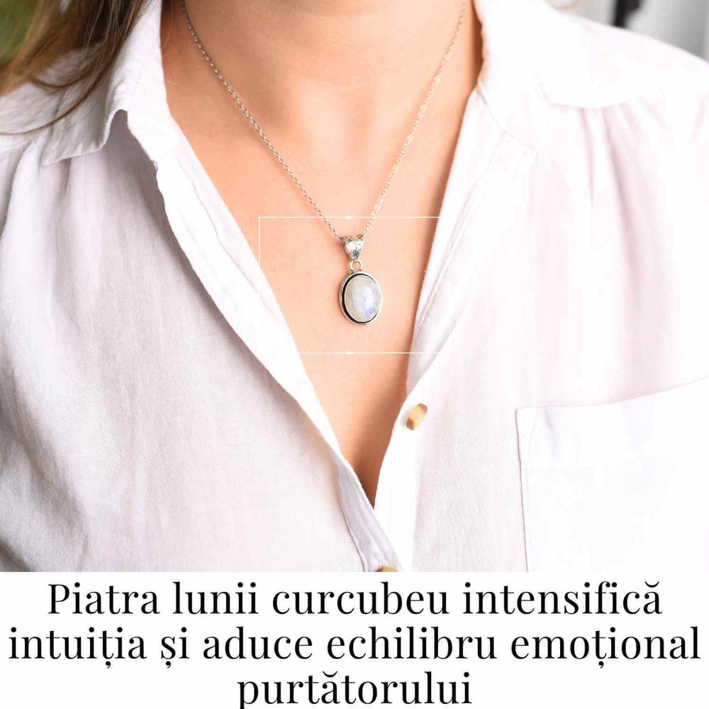 Descoperă puterea unică a Pietrei Lunii Curcubeu, acum într-un colier unic.