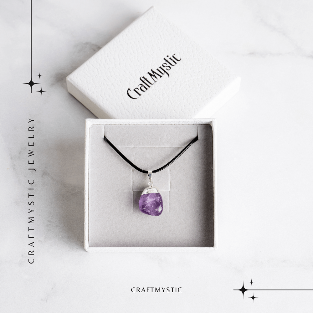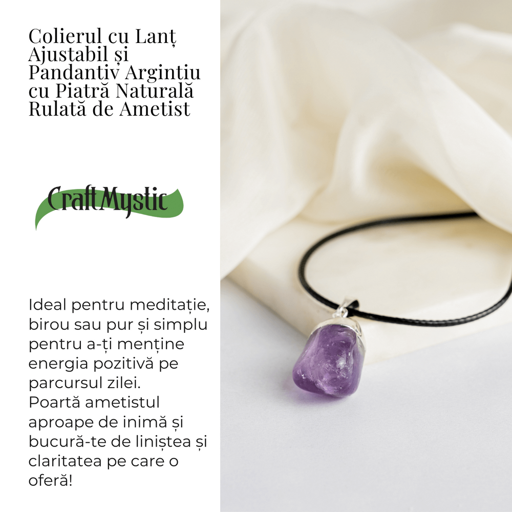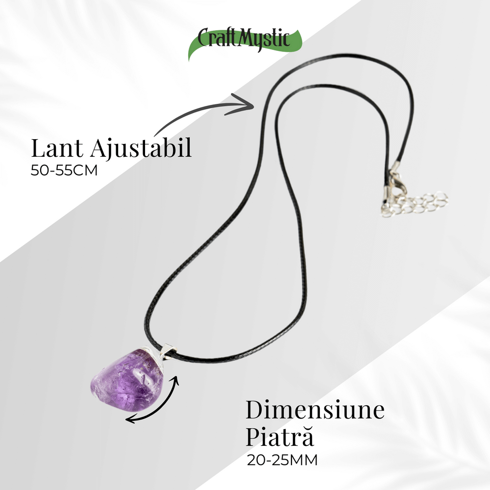 Unic și puternic: Colier cu Piatra Rulată de Ametist Natural pentru echilibru interior și protecție energetică.