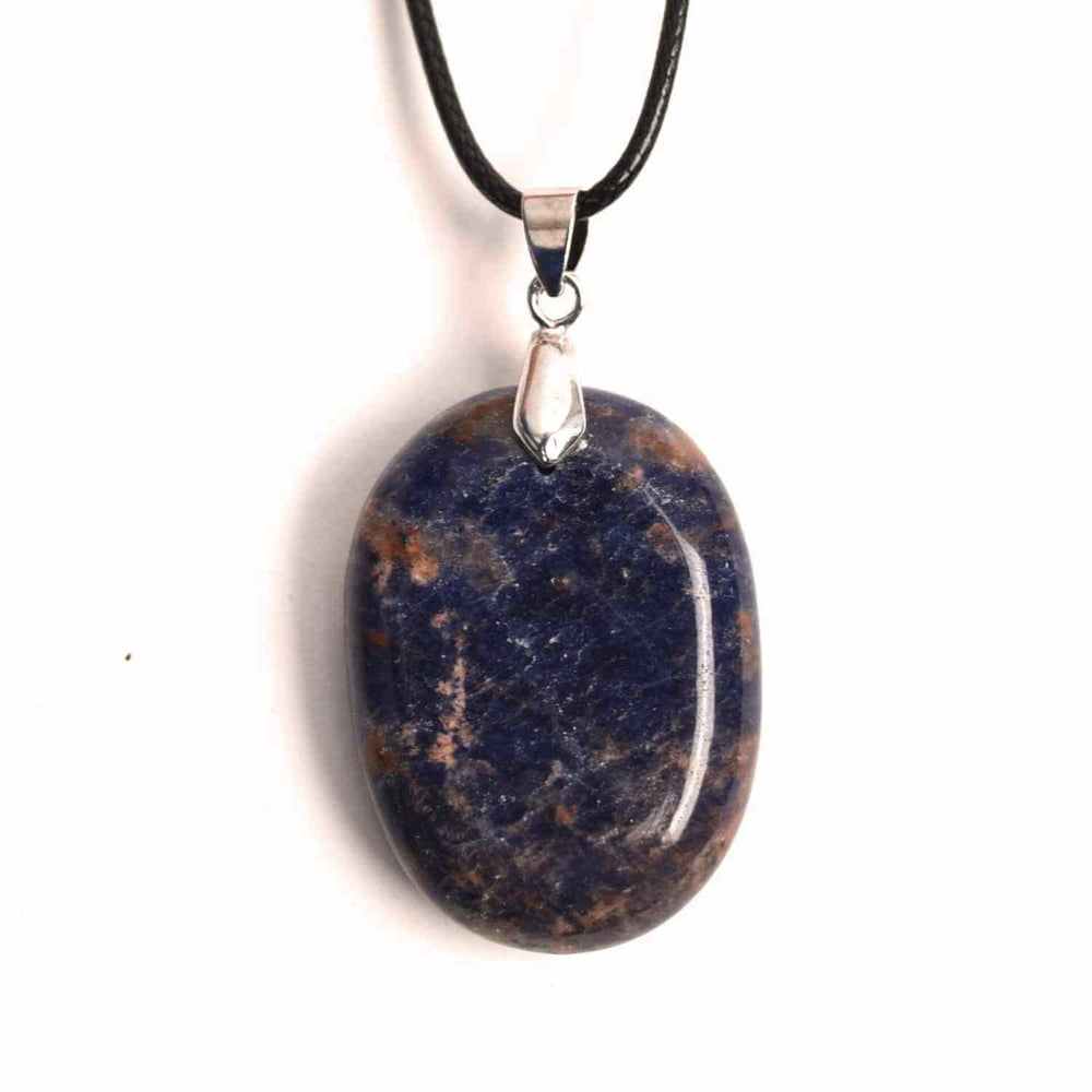 Detalii tehnice: Sodalit natural, tăiat și șlefuit în formă ovală, cu dimensiunea aproximativă de 35 mm. Montura manuală este din metal comun, iar colierul este ajustabil, cu lungimea de 44-49 cm, realizat din piele cerată artificială pentru durabilitate și confort.