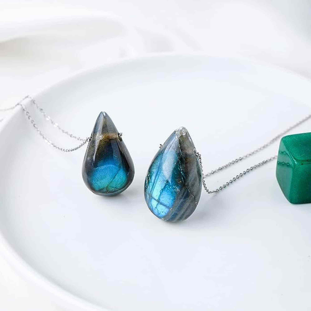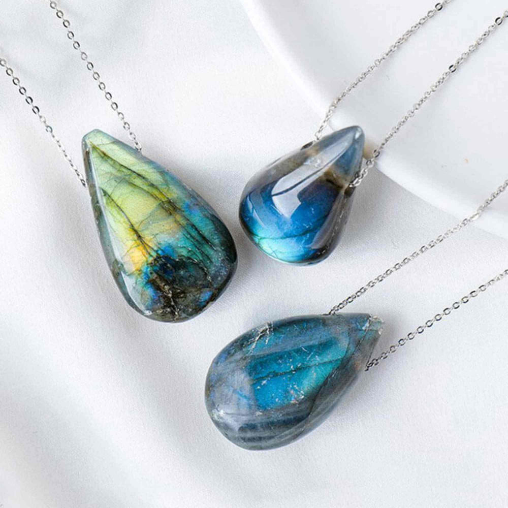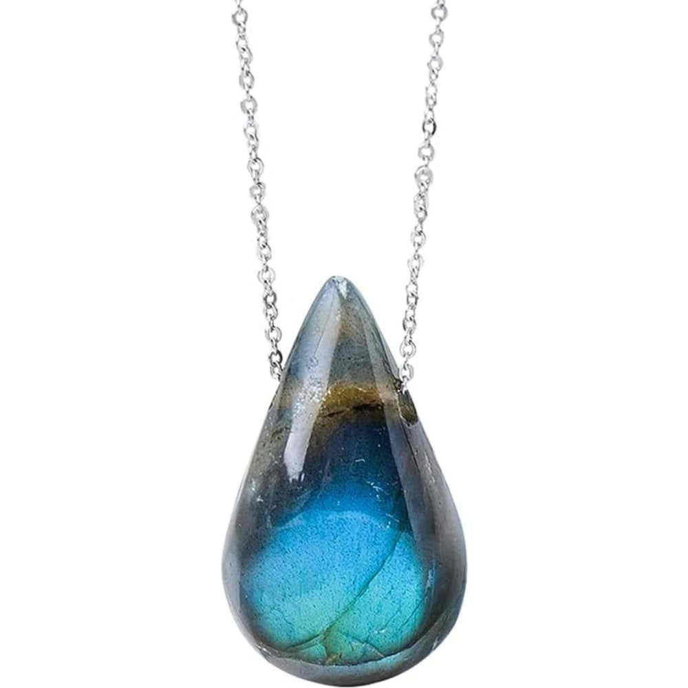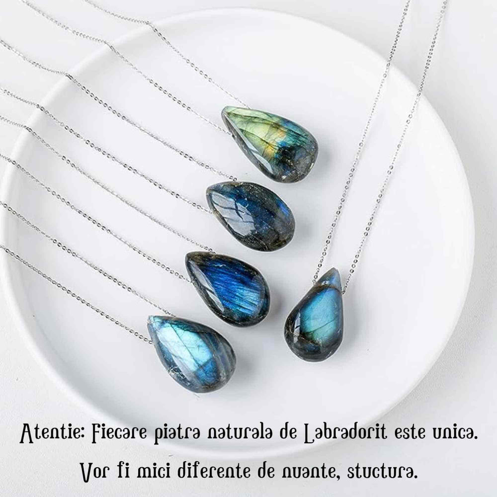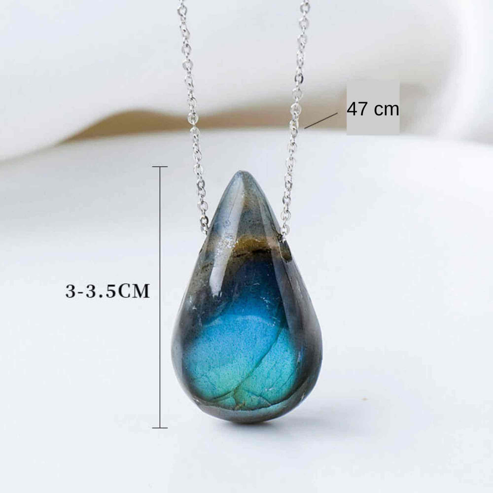 Colier metalic cu Pandantiv "Strop de ploaie" din Labradorit natural Amuleta Energetica Reiki pentru Barbati si Femei