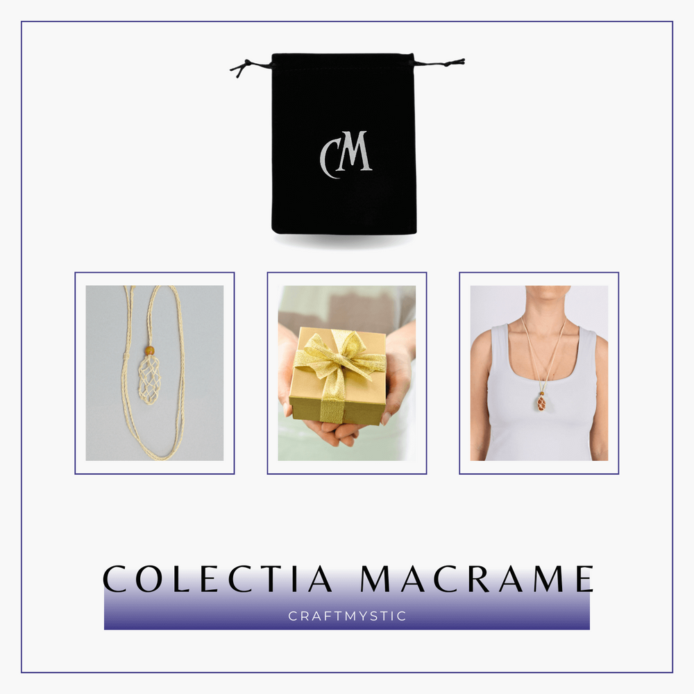 Explorează versatilitatea și arta manuală cu Colierul Macrame de la CraftMystic, special conceput pentru a purta cristalele tale preferate. Cu un design ce îmbină estetica și simbolismul, acest colier este mai mult decât un accesoriu - este un partener zilnic în căutarea echilibrului tău spiritual.
