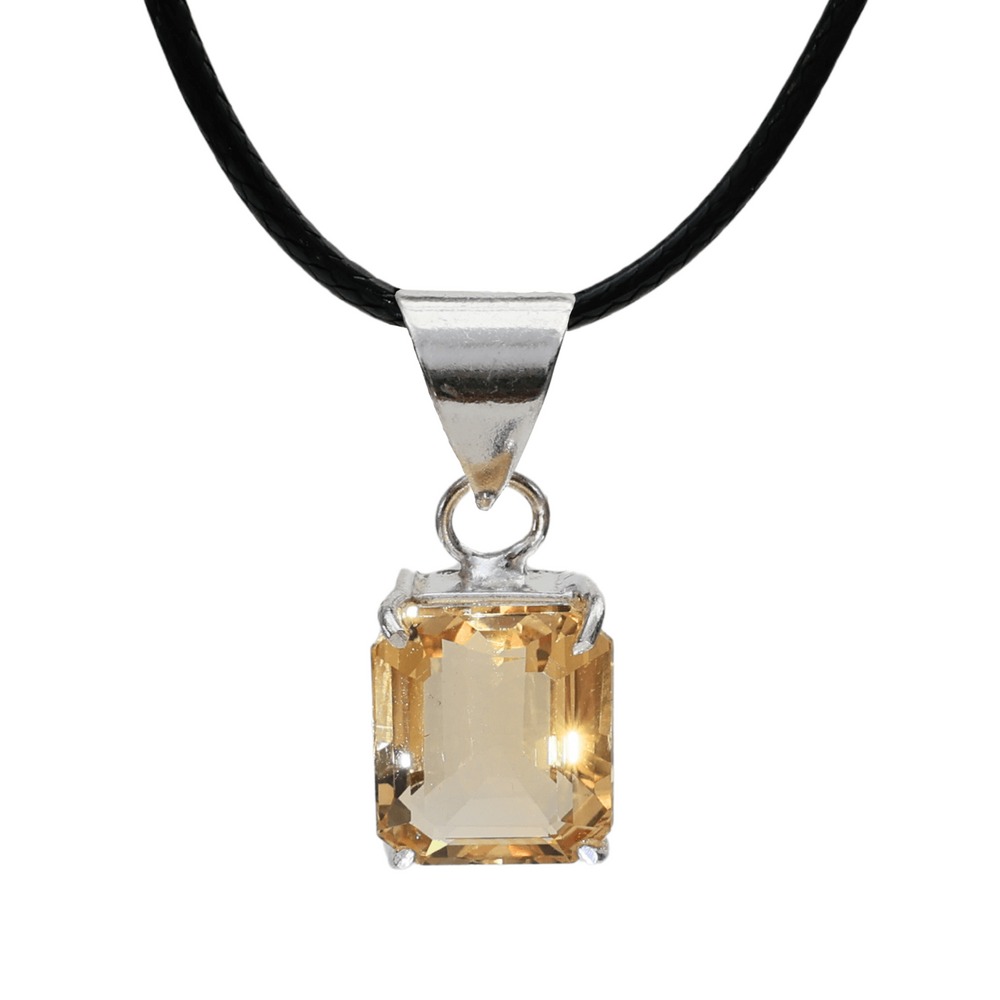 Colier Reglabil cu Pandantiv Argintiu 15mm in Forma Dreptunghiulara cu Citrin Natural Fatetat