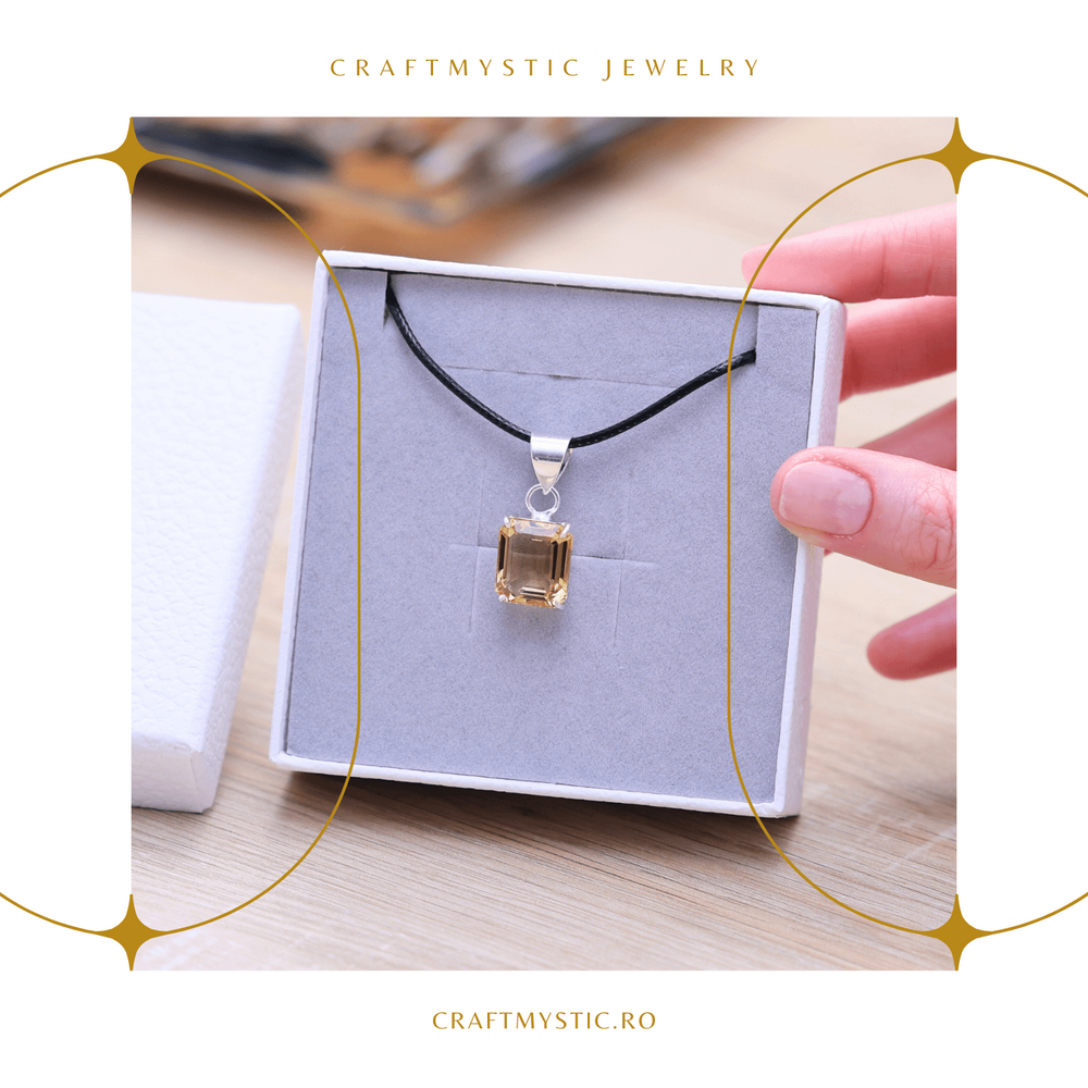 - Design Rafinat: Pandantivul cu citrin fatetat, montat pe un lant argintiu reglabil, emana o luminozitate calda si sofisticata.